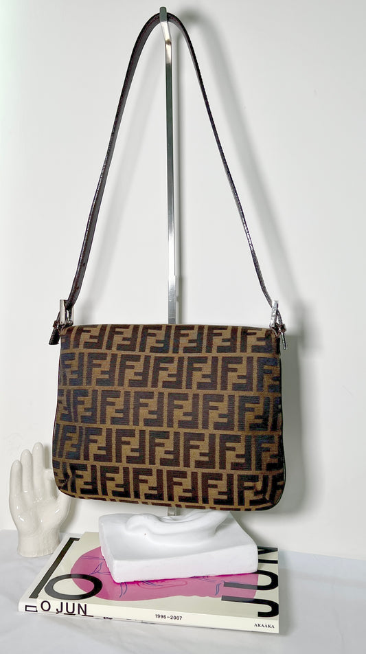 Fendi啡色老花氣質法棍包肩背側背孭手袋