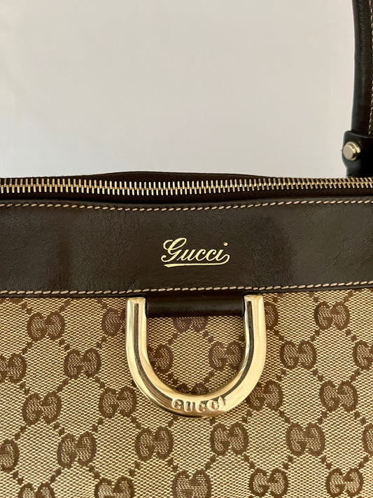 Gucci皮革手柄啡色老花手提肩背側肩袋
