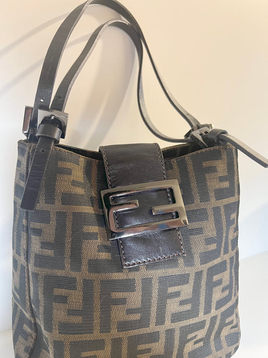 Fendi啡色老花皮革肩帶手提袋腋下包