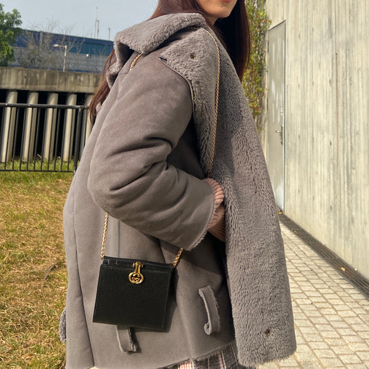 GUCCI黑色皮錢包 外加金色鏈條 日本中古 Vintage