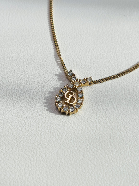 Dior Vintage Necklace 金色水滴型水鑽項頸鏈