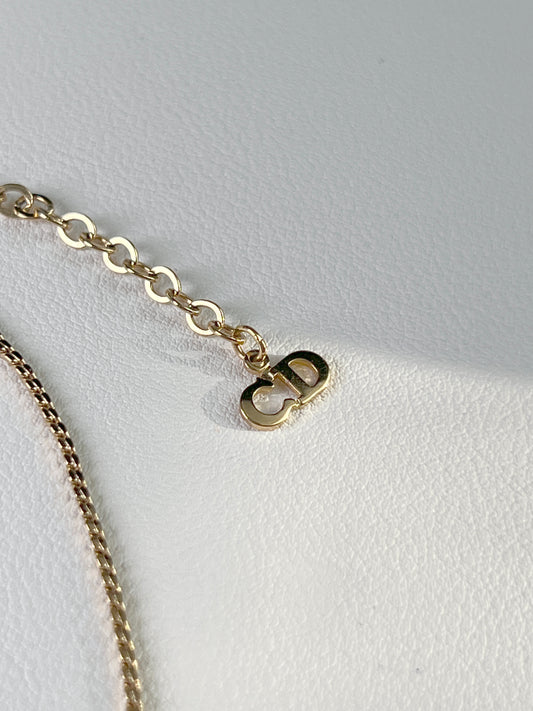 Dior CD金色水鑽吊墜頸鏈項鏈延長鏈