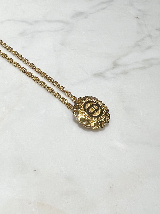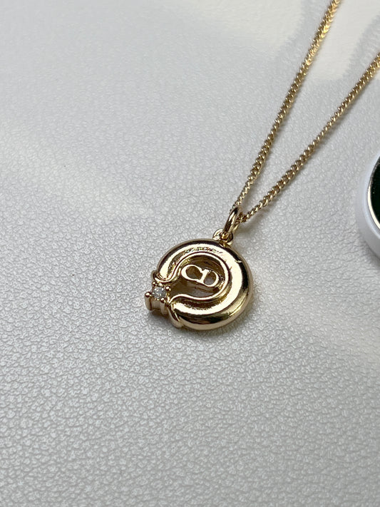 Dior CD迪奧金色圓形水鑽吊墜頸鏈項鏈