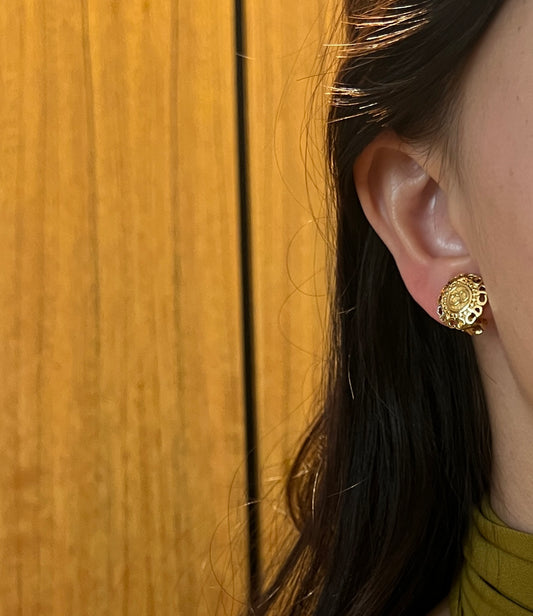 Dior極美品稀有款式滿版CD環形金色耳夾 日本中古二手vintage