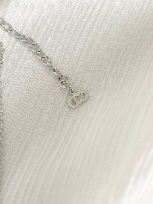 Dior經典銀色吊墜頸鏈 有保證書 首飾包裝盒絲帶 日本中古Vintage