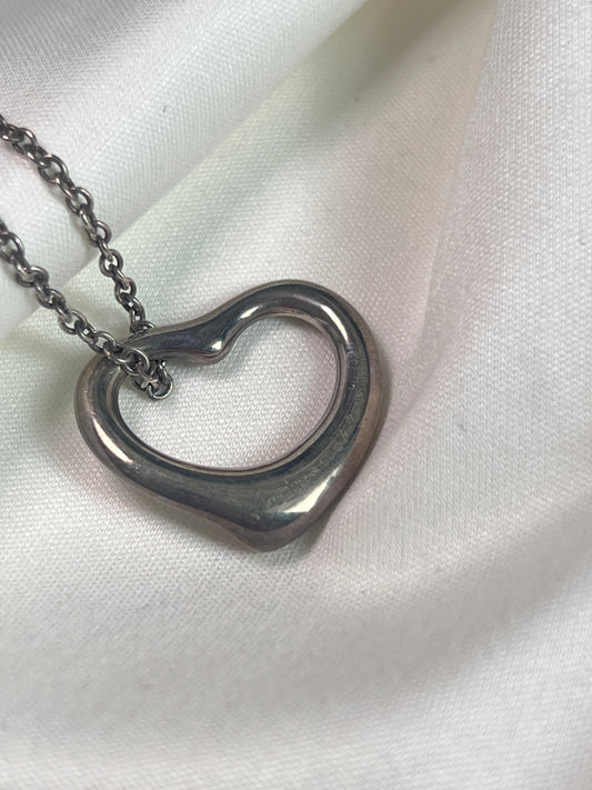 TIFFANY & CO 925純銀中空心形吊墜頸鏈