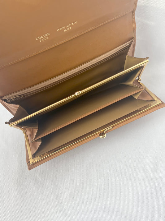 Celine啡色老花早期口金卡片套錢包長夾小手袋