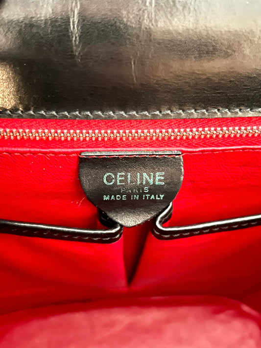 Celine席琳獨特開蓋設計黑色皮革中古手提袋肩背包 日本vintage
