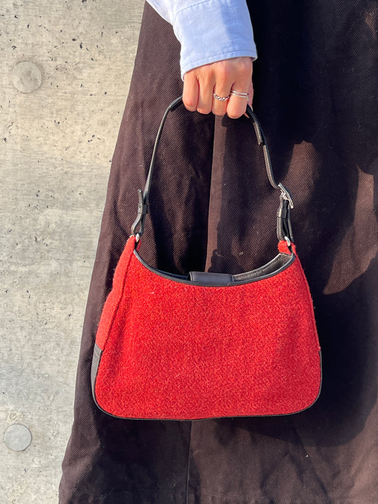 Coach暗紅色尼毛側背包 腋下包 | VINTAGE