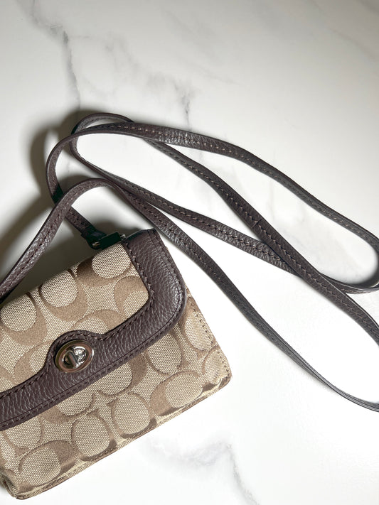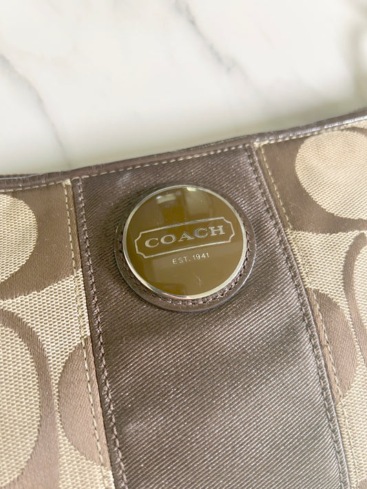 Coach啡色老花單肩斜背斜孭包卡片袋