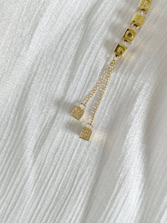 Dior金色立方體罕有吊墜 水鑽頸鏈 日本中古vintage