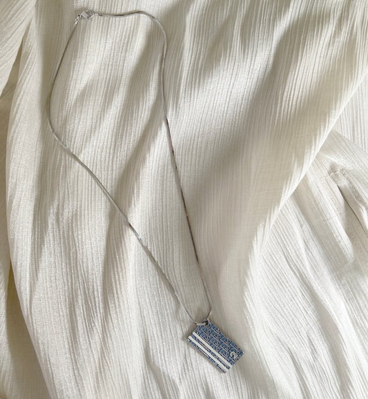 Dior經典銀色吊墜頸鏈 有保證書 首飾包裝盒絲帶 日本中古Vintage
