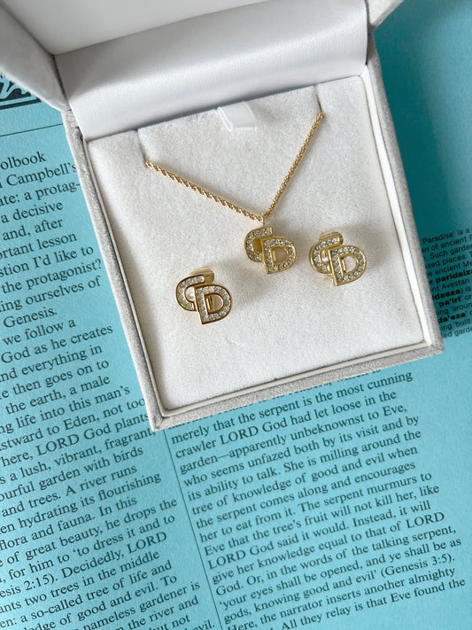 Dior鍍金經典CD水晶耳夾耳環頸鏈項鏈 極美品 日本中古vintage