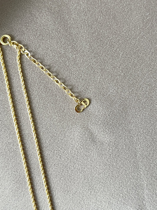 Dior CD金色水鑽吊墜頸鏈項鏈延長鏈