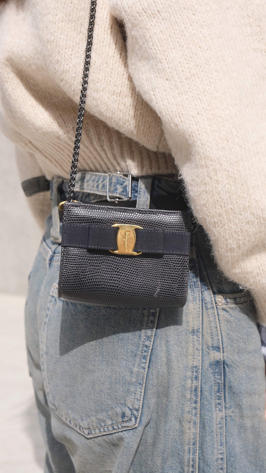 Salvatore Ferragamo Vara Bow Logo Lizard Leather Bag 皮革包 手提包 側肩包