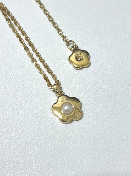 Givenchy絕版珍珠花形金色頸鏈項鏈延長鏈 日本中古Vintage