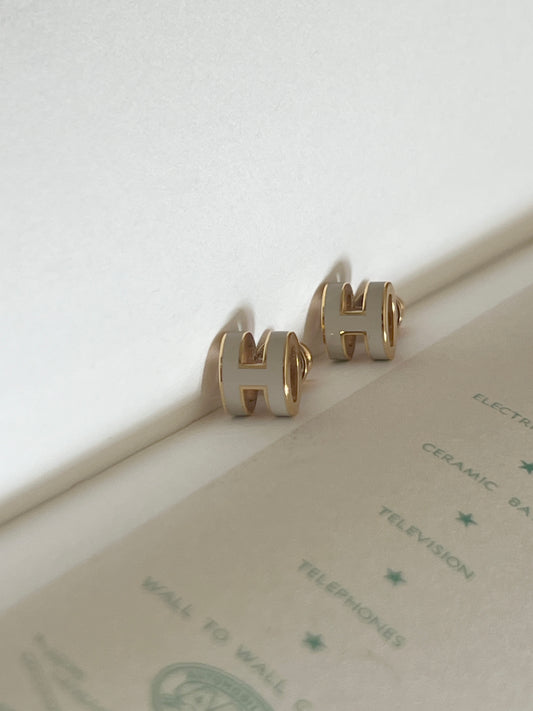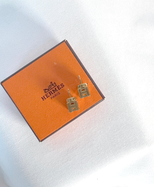 Hermès立方H白面金扣耳環 首飾 飾品 原裝盒