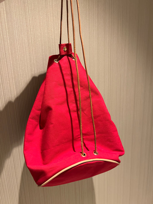 HERMES Vintage Backpack中古紅色帆布金扣皮革肩帶背包皮肩背袋