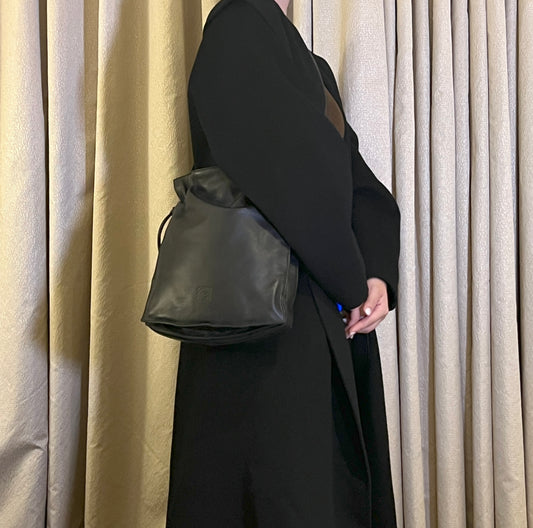 Loewe Flamenco黑色羊皮斜挎單肩束繩袋束口肩背包 日本中古美品