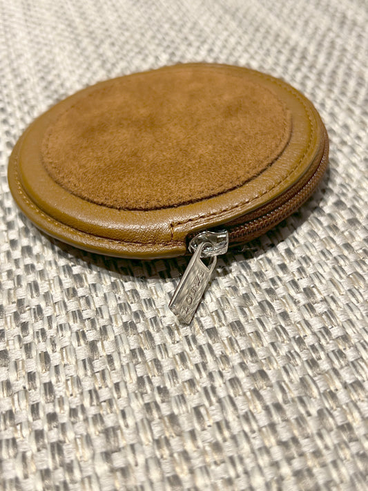 Loewe啡色皮革猄皮圓形散子零錢包 原裝盒 保證書 日本中古二手