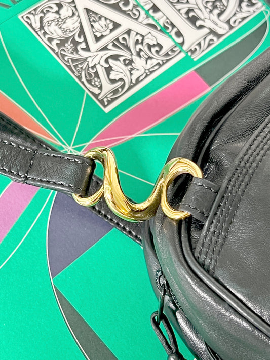 Loewe罕有螺旋五金設計軟熟黑色皮革側肩斜揹古董包