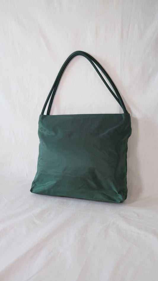 Prada Oliva Jade Emerald Classic Logo Nylon Shoulder Bag