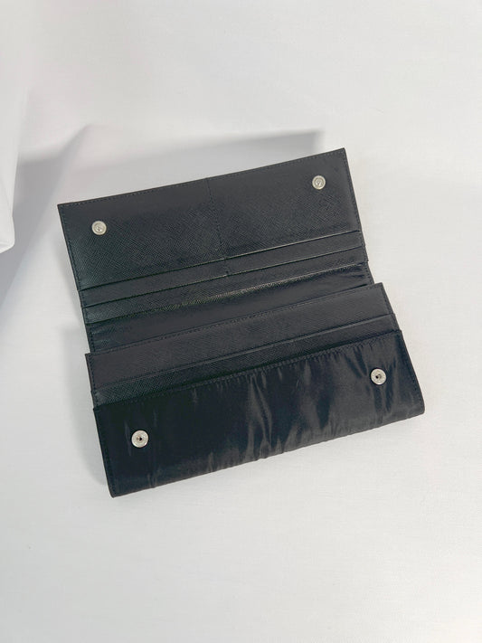 PRADA Nylon x Leather Triangle Long Wallet 尼龍皮革長銀包 有原裝盒絲帶