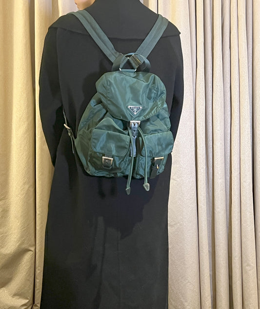 Prada綠色經典降落傘材質尼龍背包背囊 有保證卡