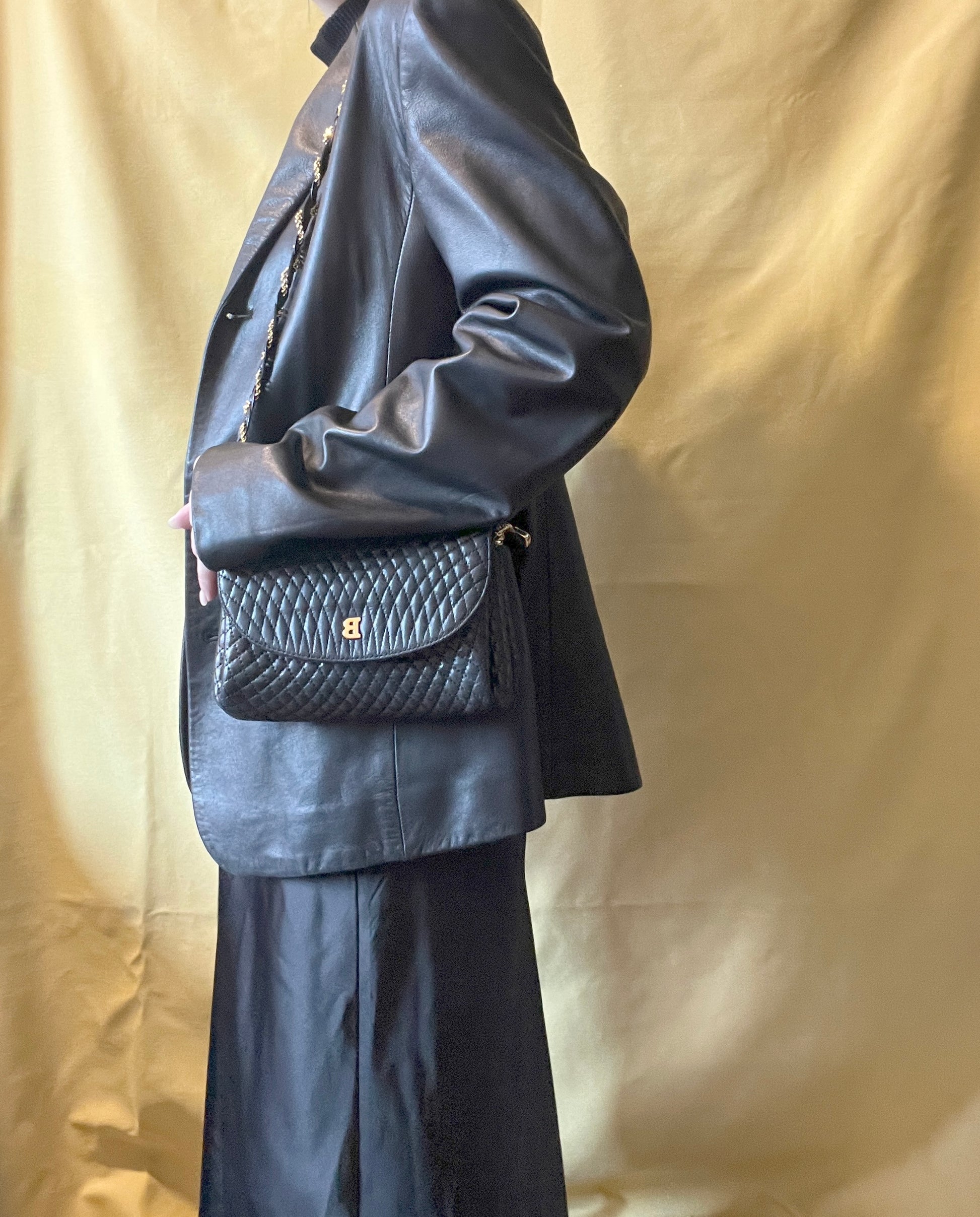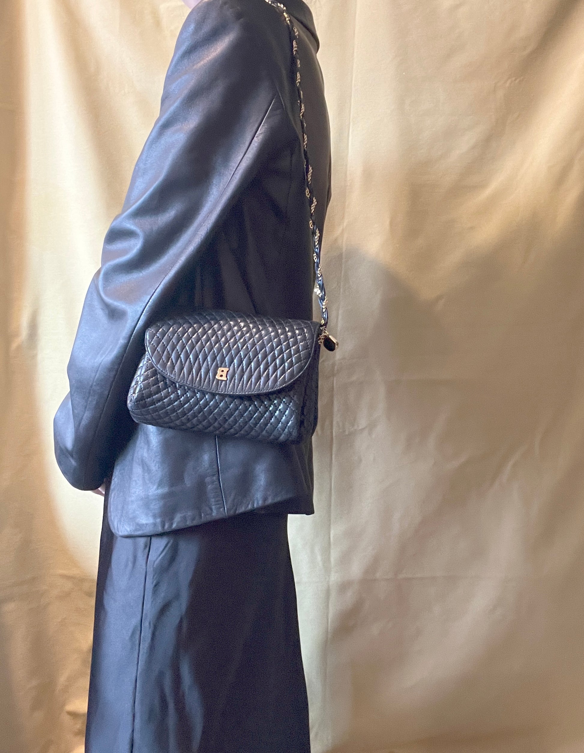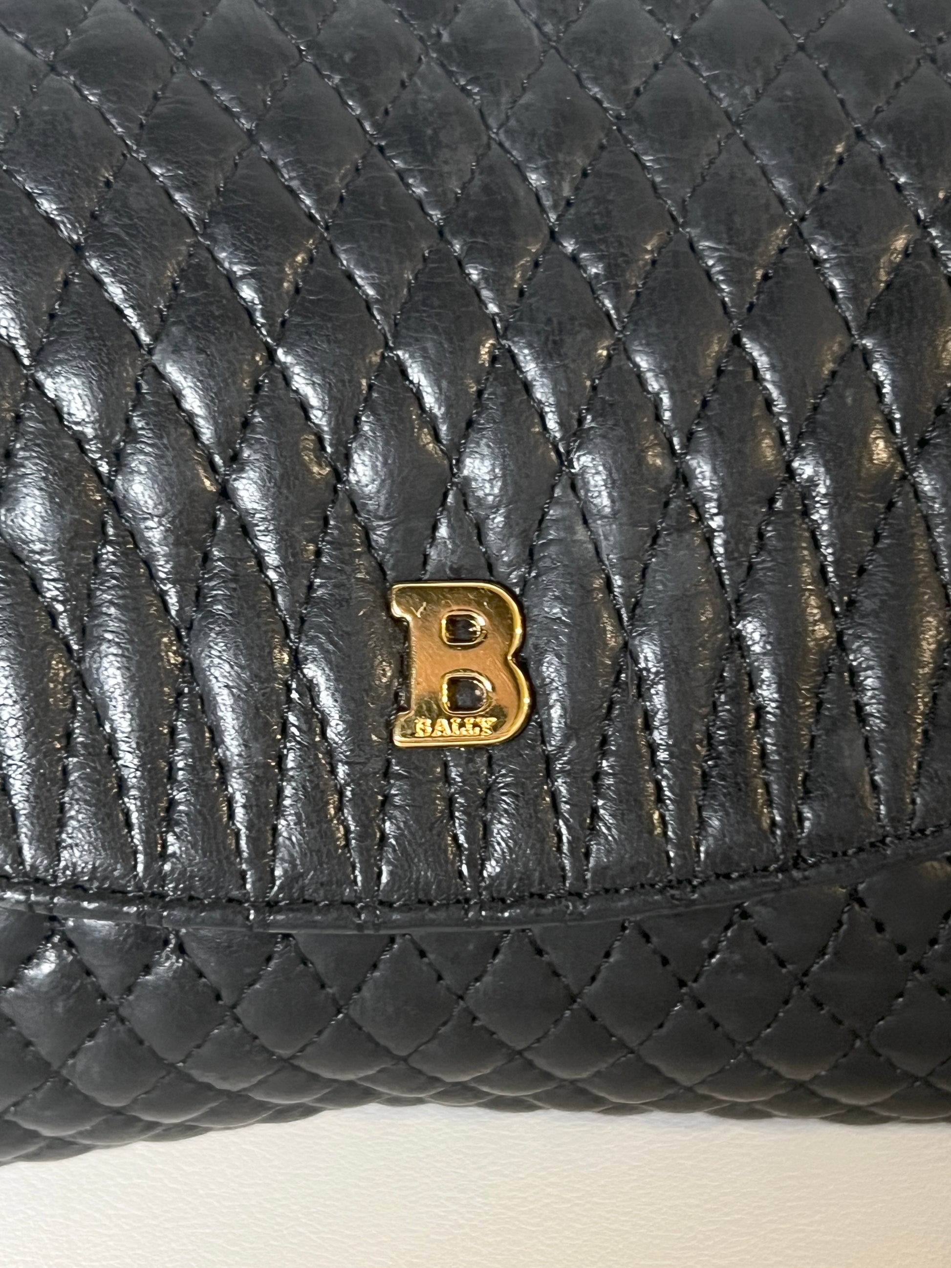 產品名稱: Bally黑色皮革菱格肩背包手提包腋下斜揹袋 日本中古Vintage