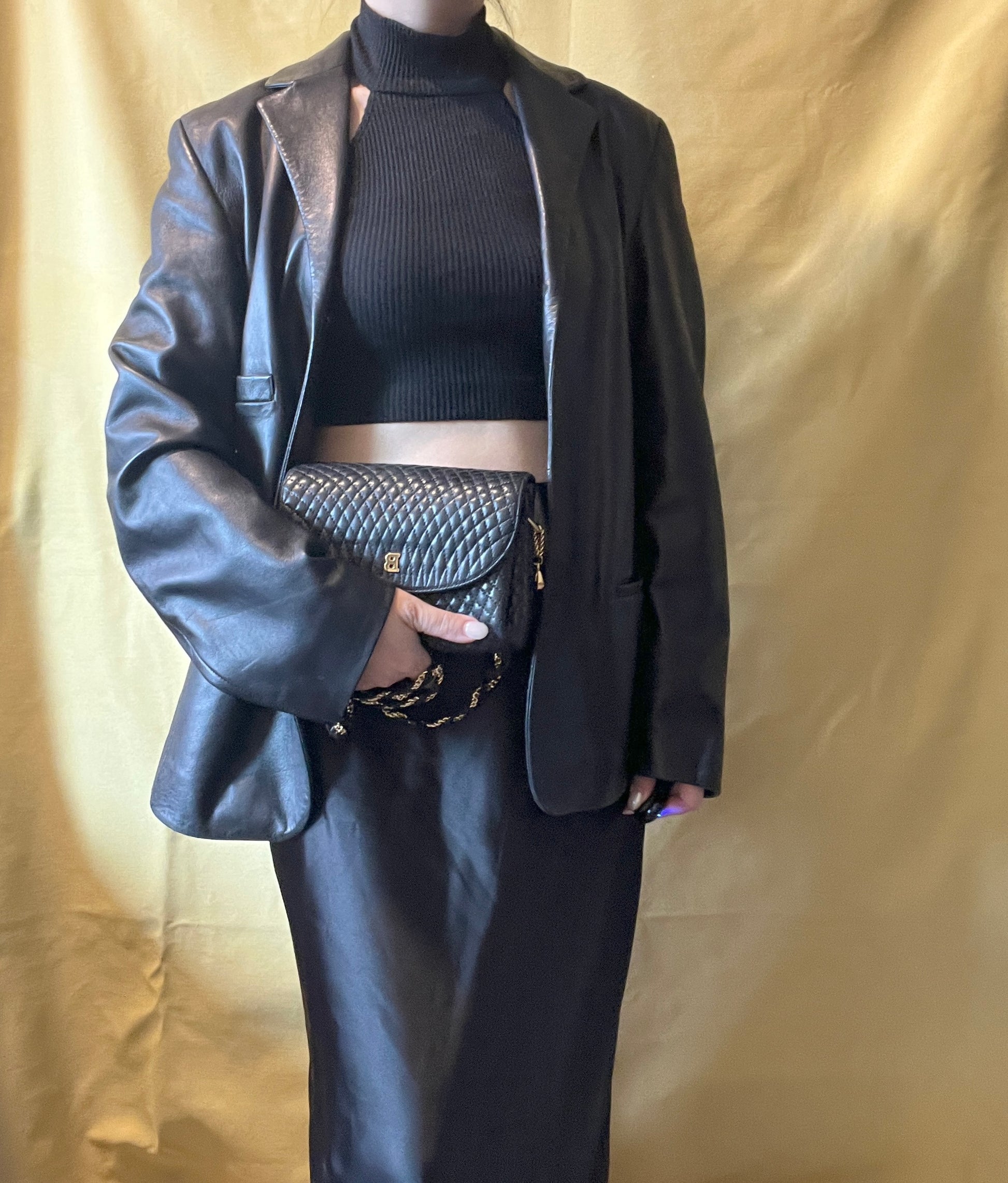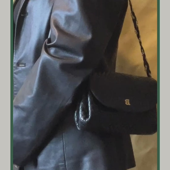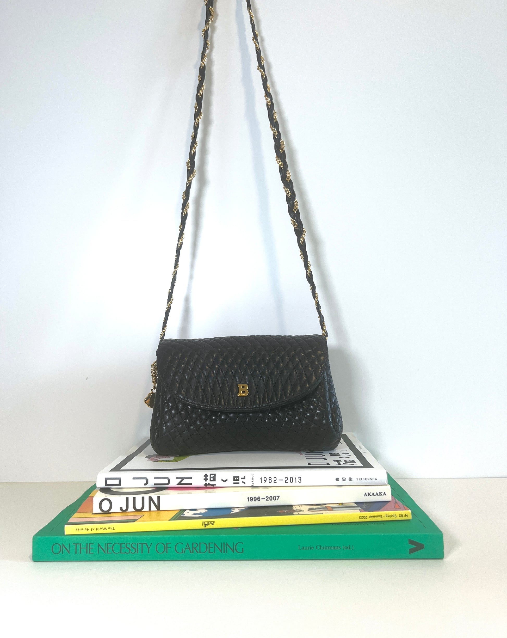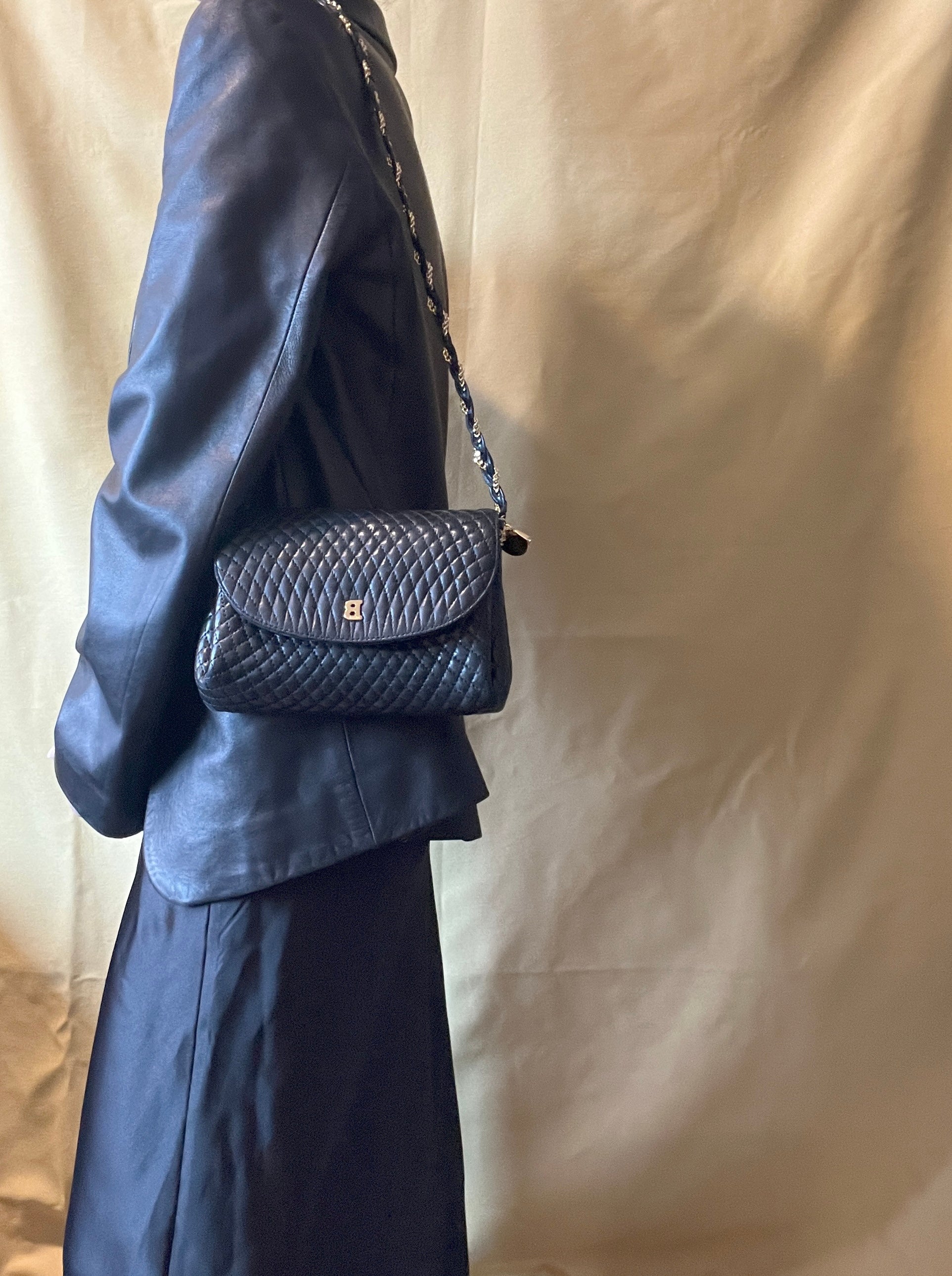 產品名稱: Bally黑色皮革菱格肩背包手提包腋下斜揹袋 日本中古Vintage