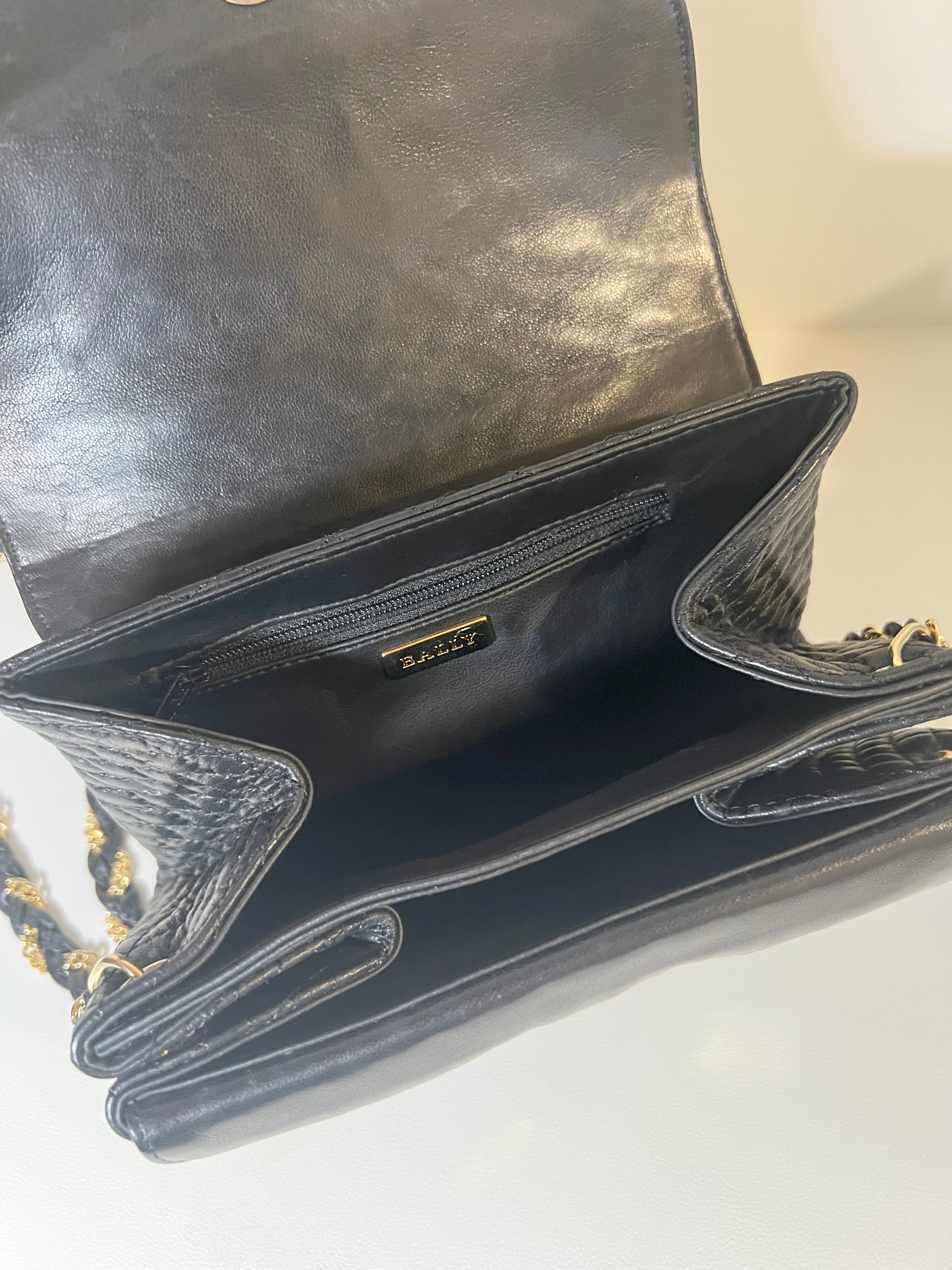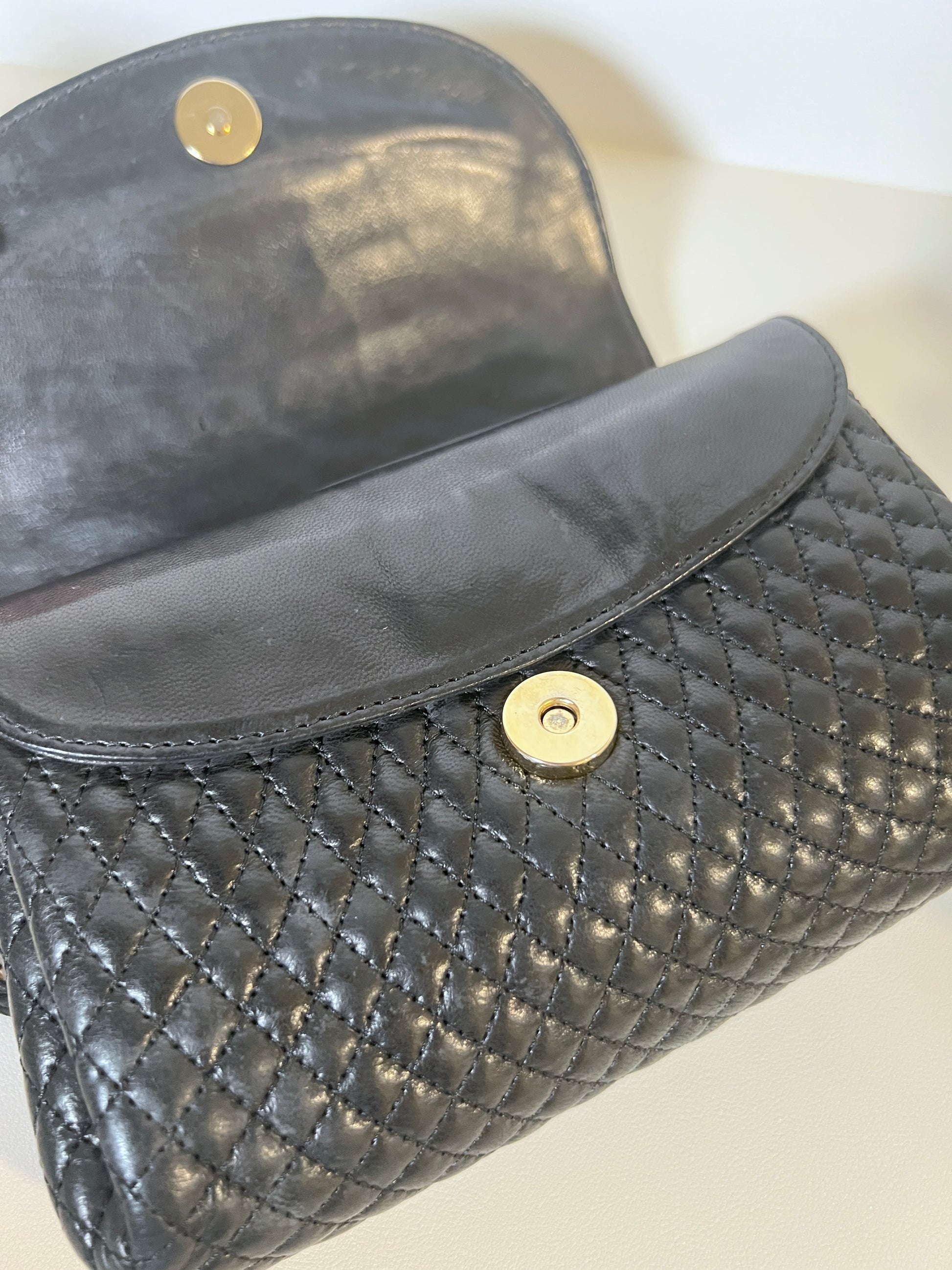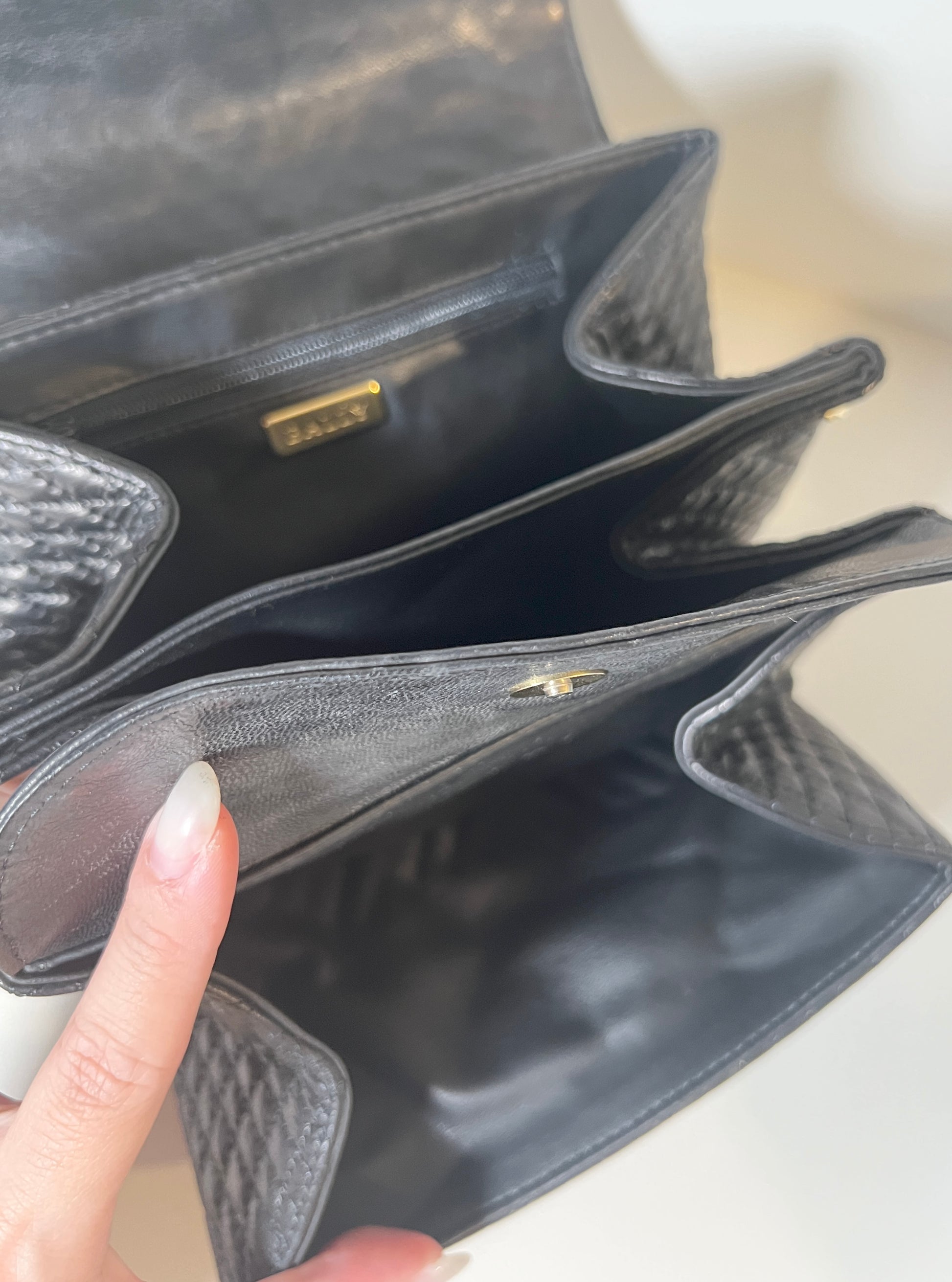 Bally黑色皮革菱格肩背包手提包腋下斜揹袋