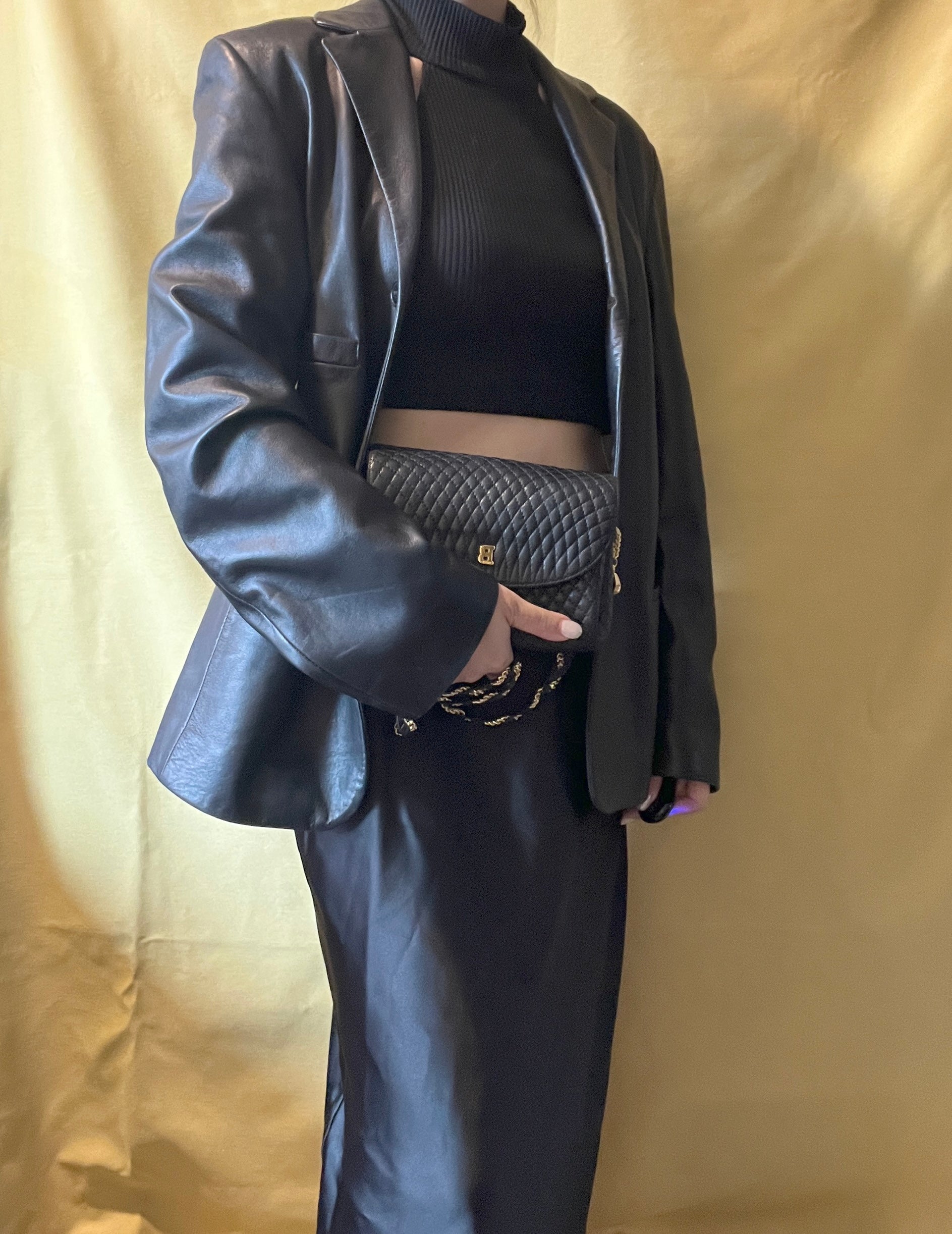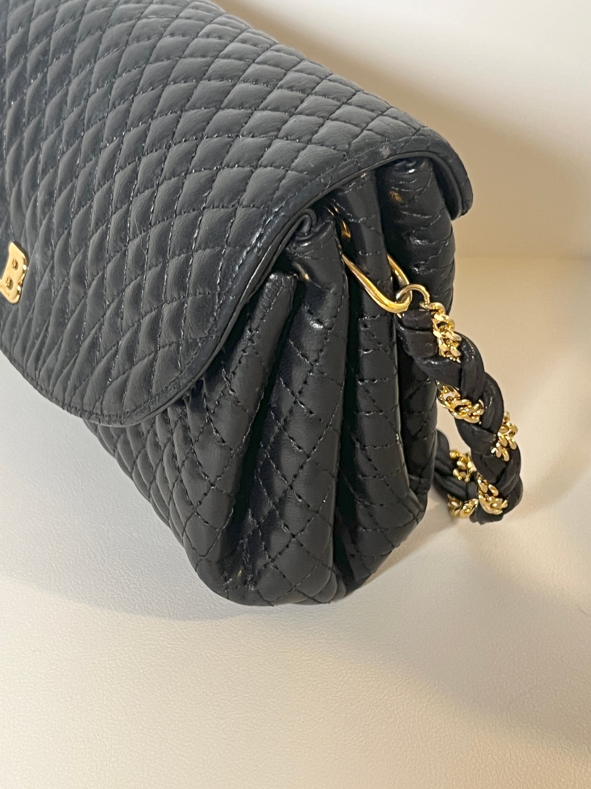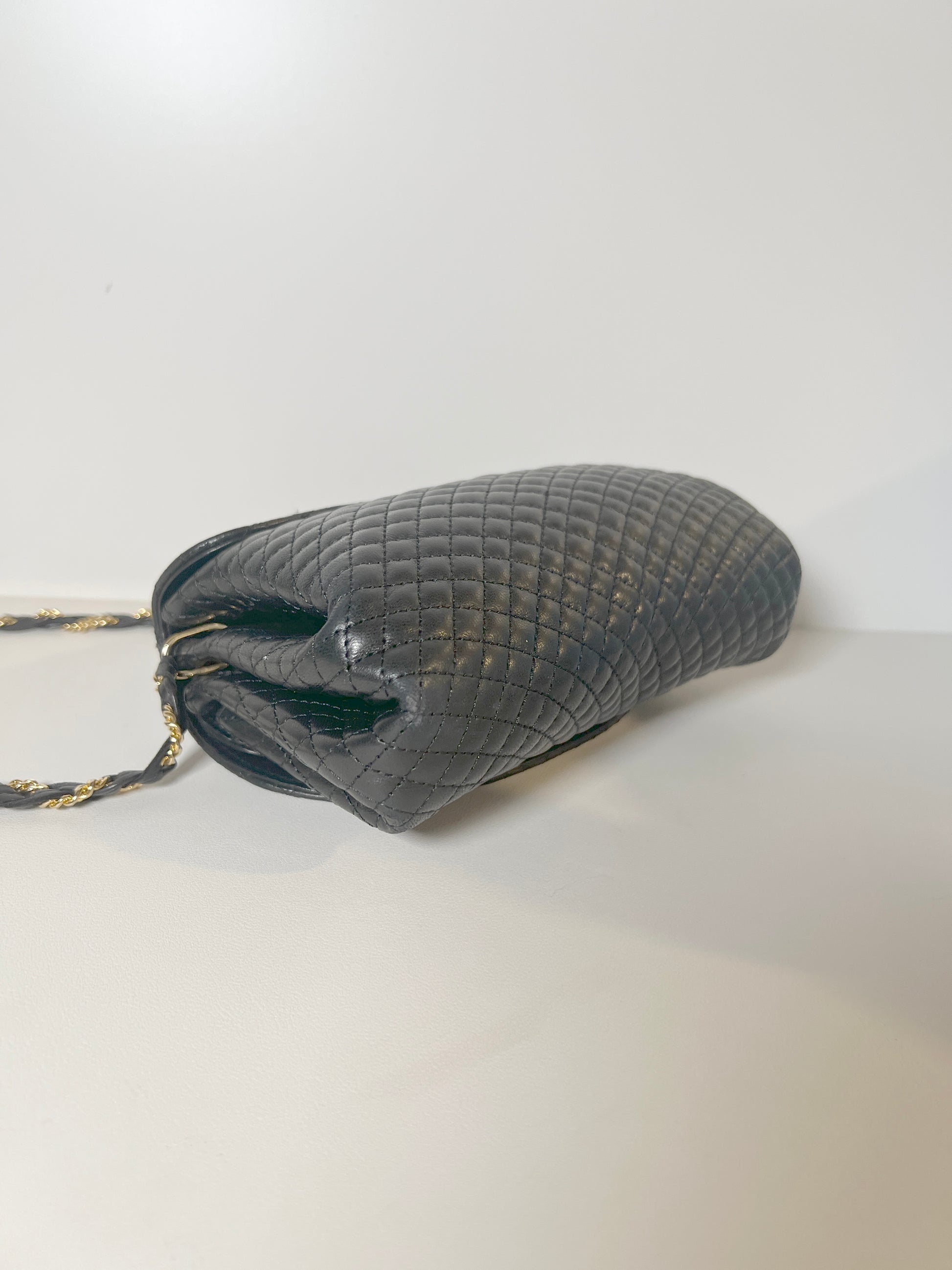 Bally黑色皮革菱格肩背包手提包腋下斜揹袋