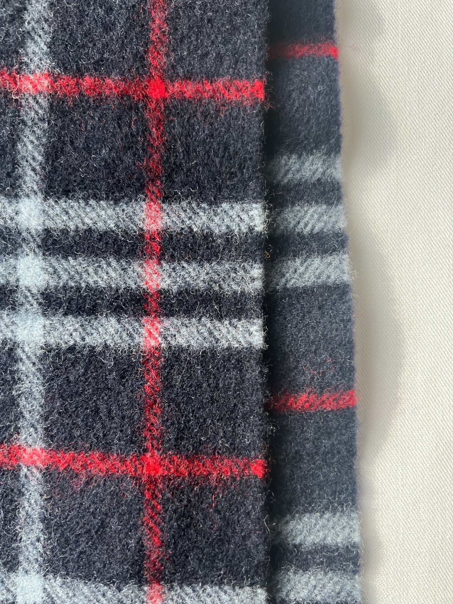 產品名稱: Burberry Scarf經典深藍色格紋流蘇頸巾 全羊毛 日本中古Vintage