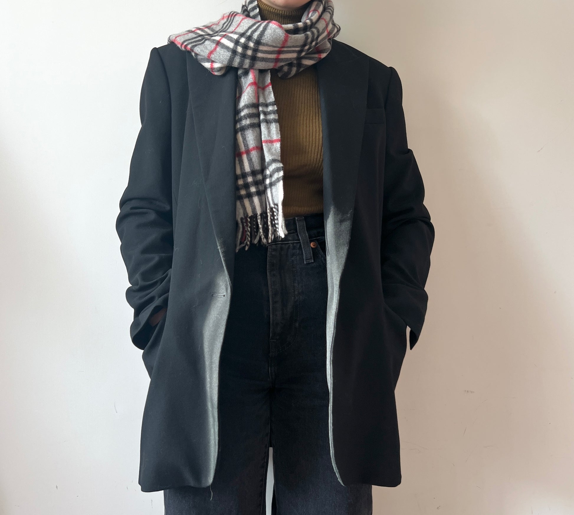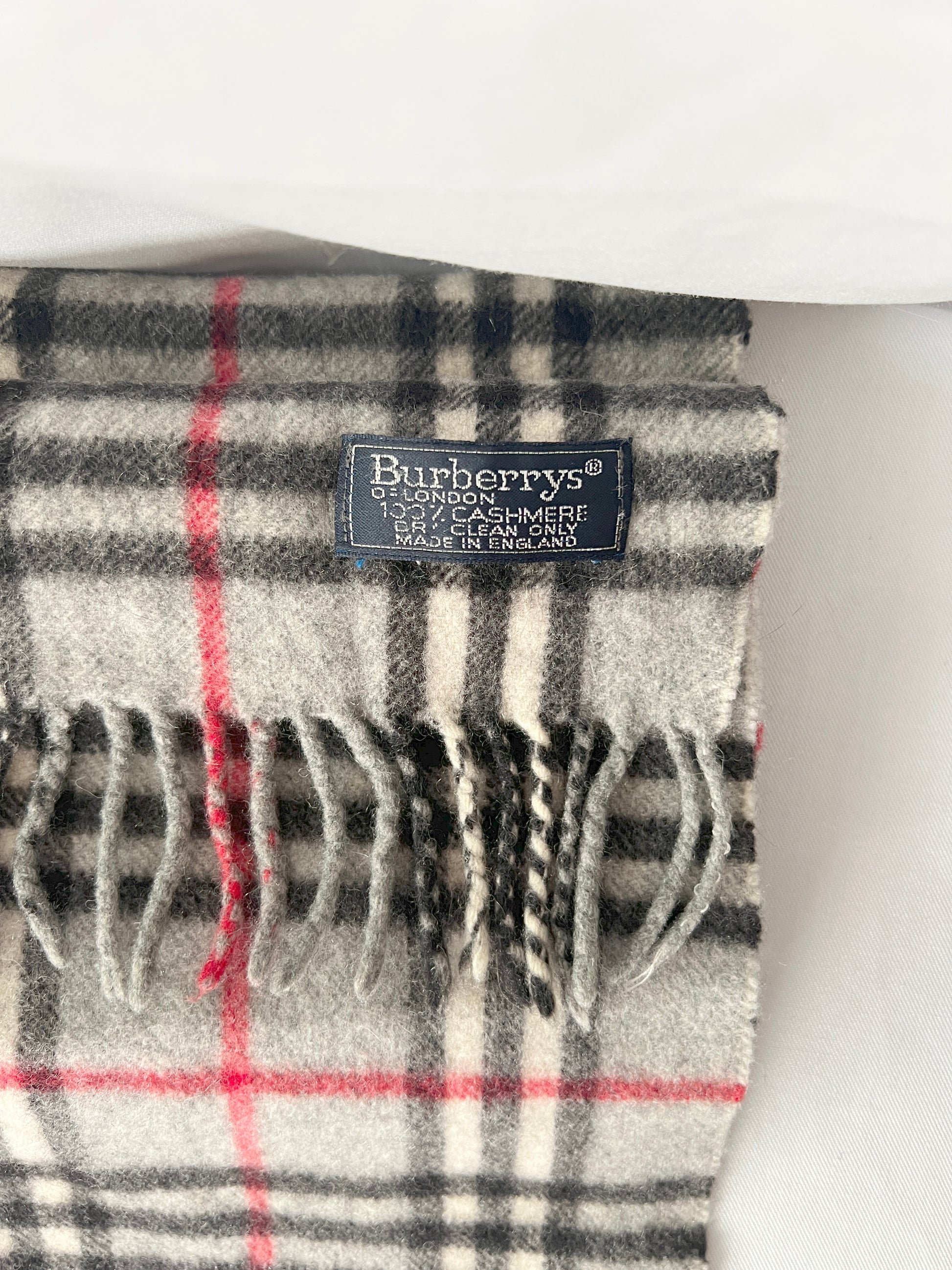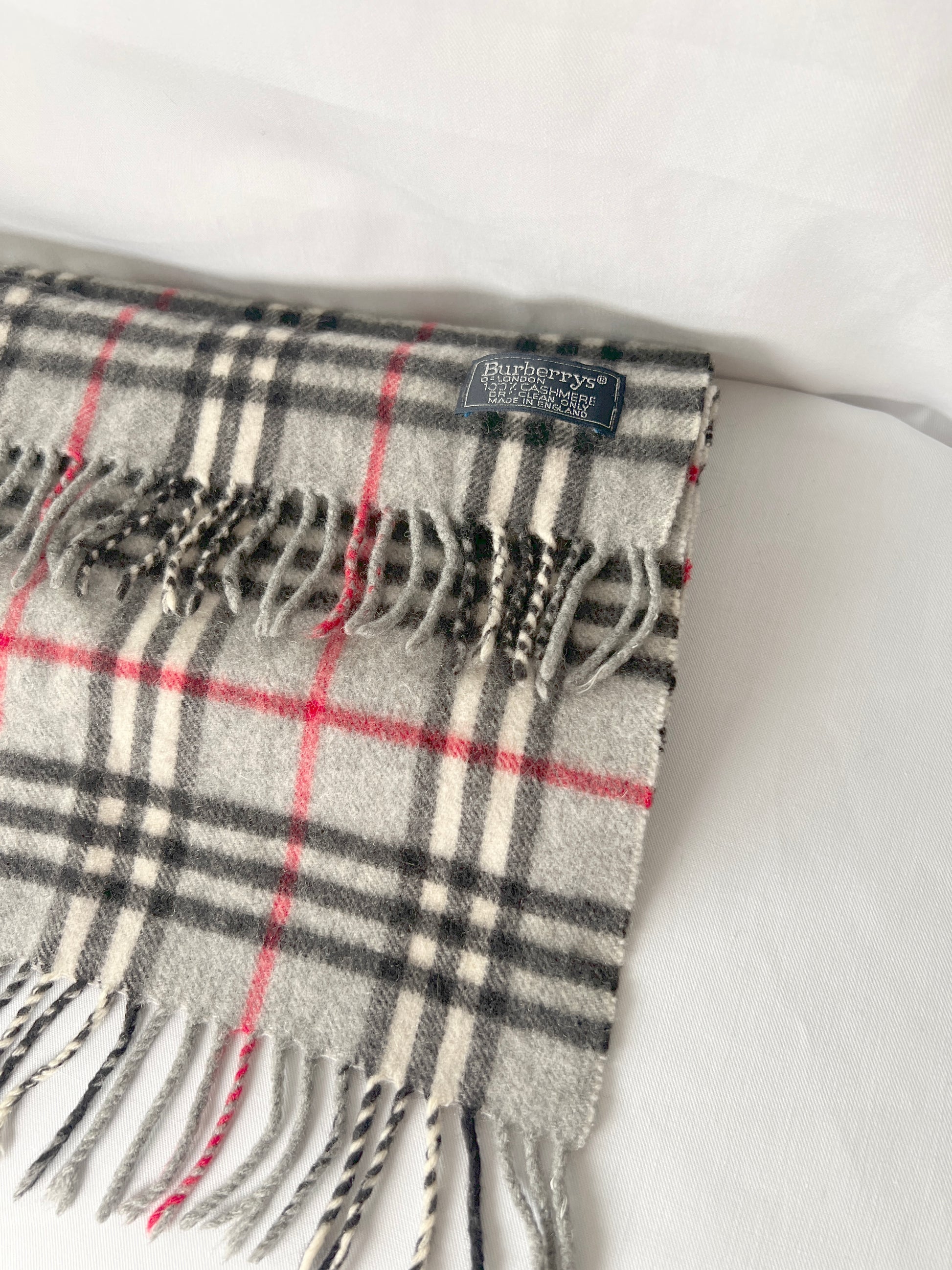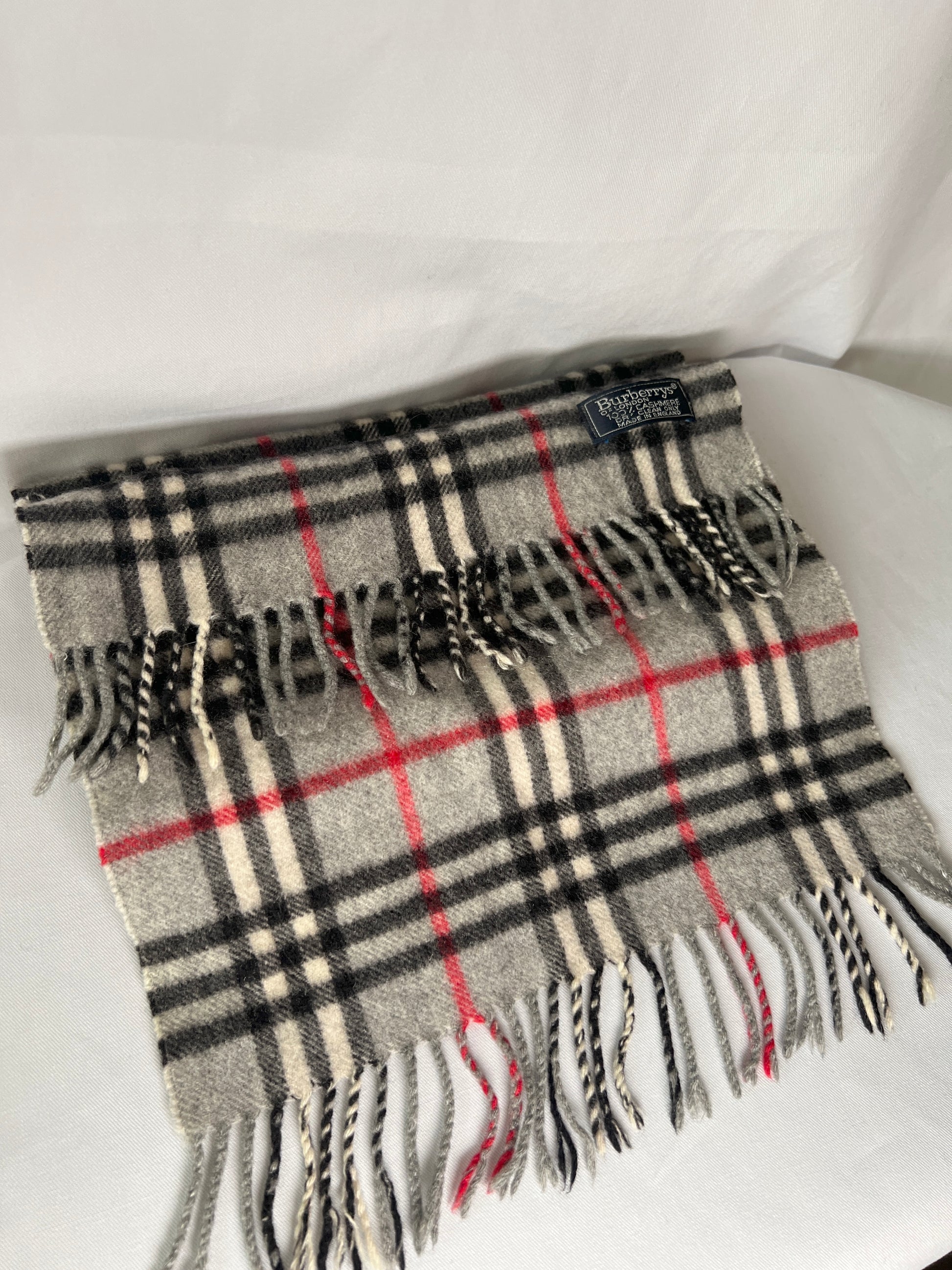 Burberry Scarf經典灰色格紋流蘇頸巾 全羊毛 日本中古Vintage