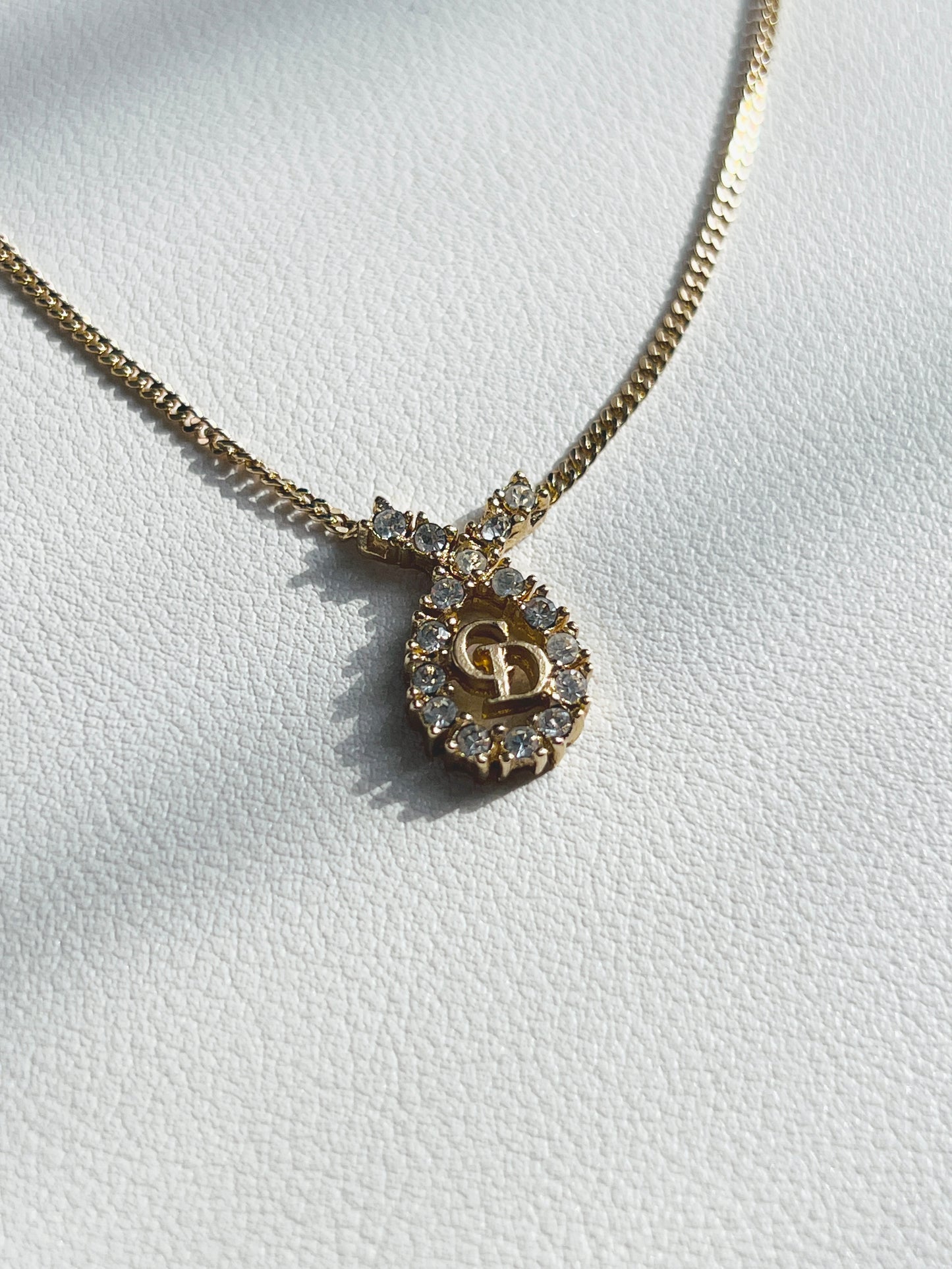 產品名稱: Dior人氣水滴型水鑽鍍金頸鏈 日本中古Vintage 情人節禮物 極美品