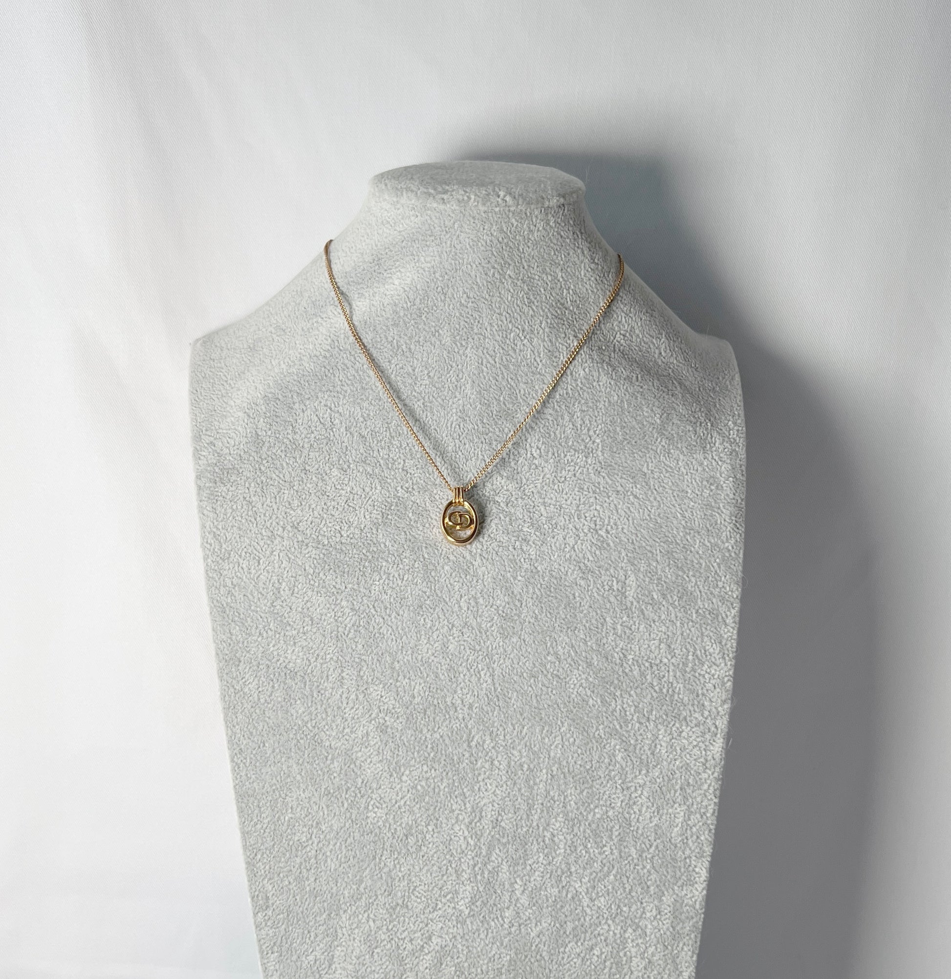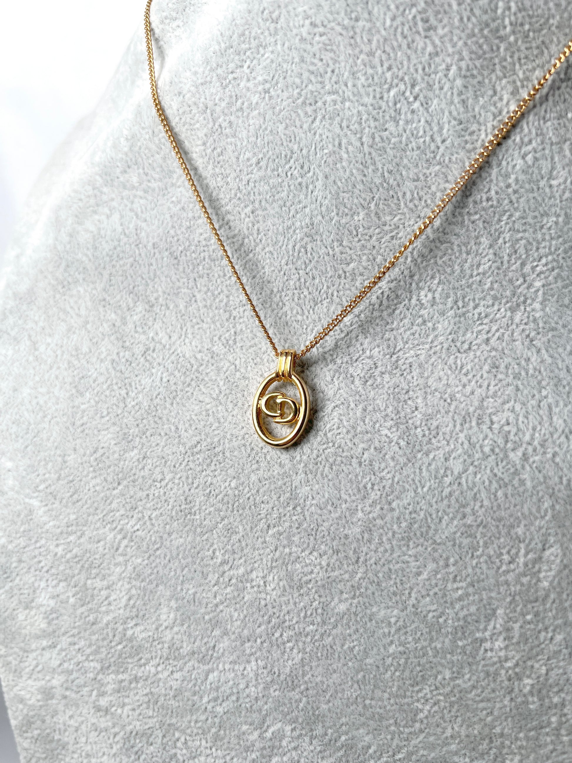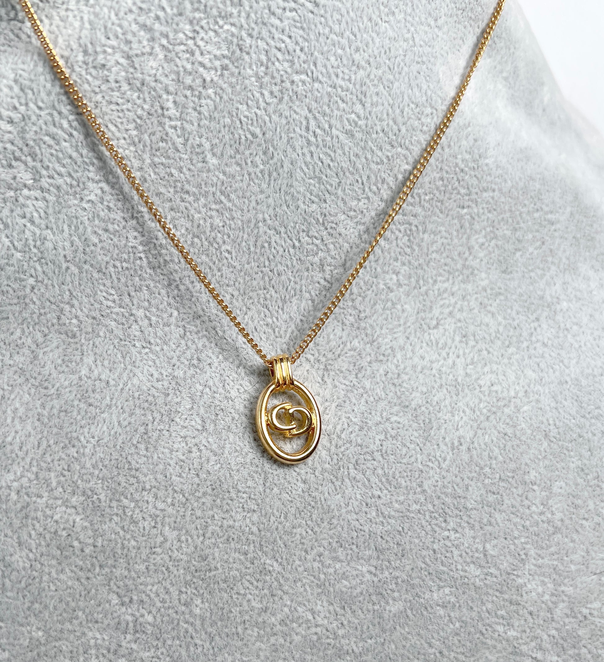Dior橢圓形CD中古金色項鍊頸鏈 絨面首飾盒 情人節禮物