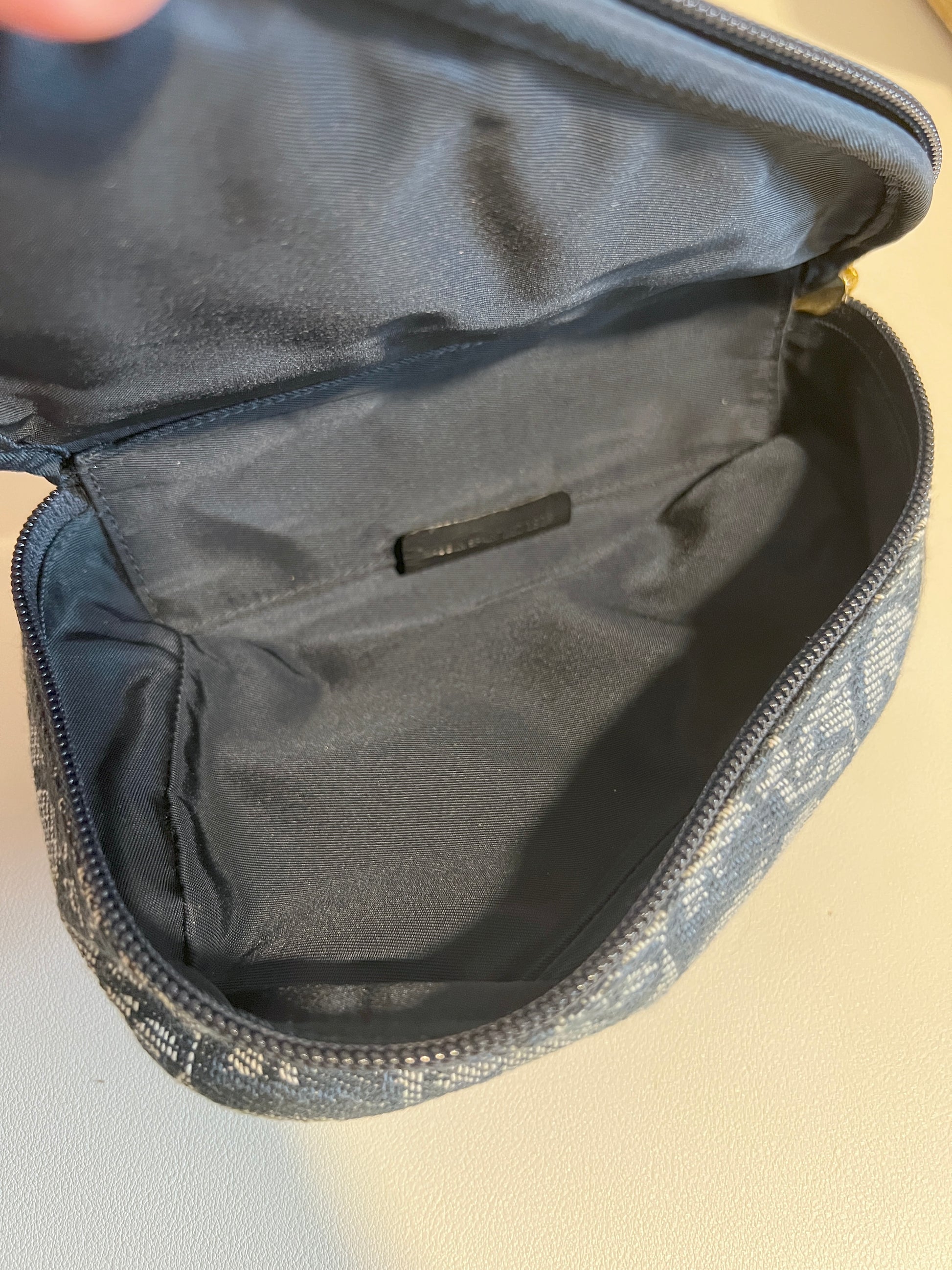 Dior深藍色馬鞍手拿包肩背側肩袋 贈金屬肩帶及珍珠吊飾 中古Vintage