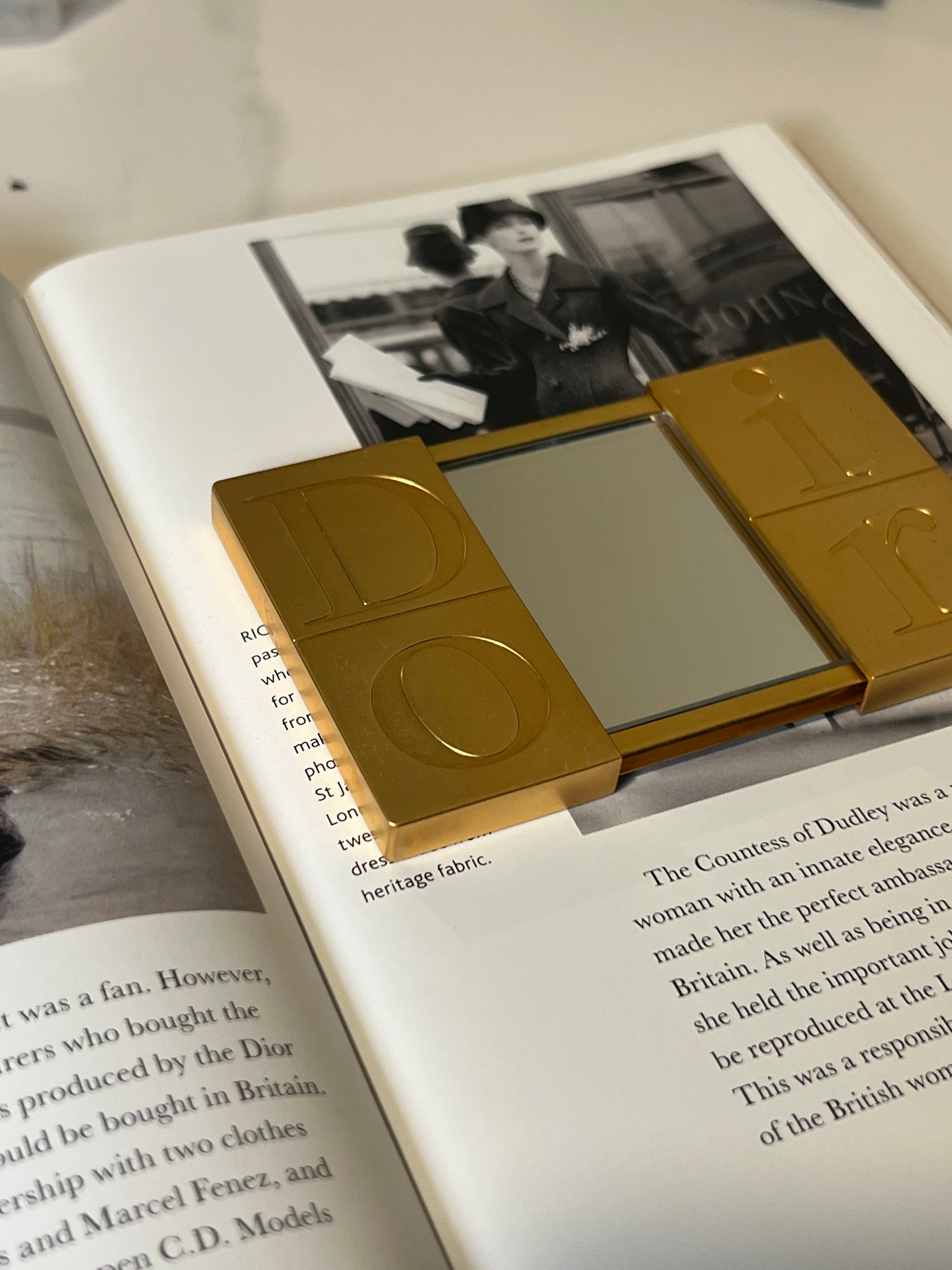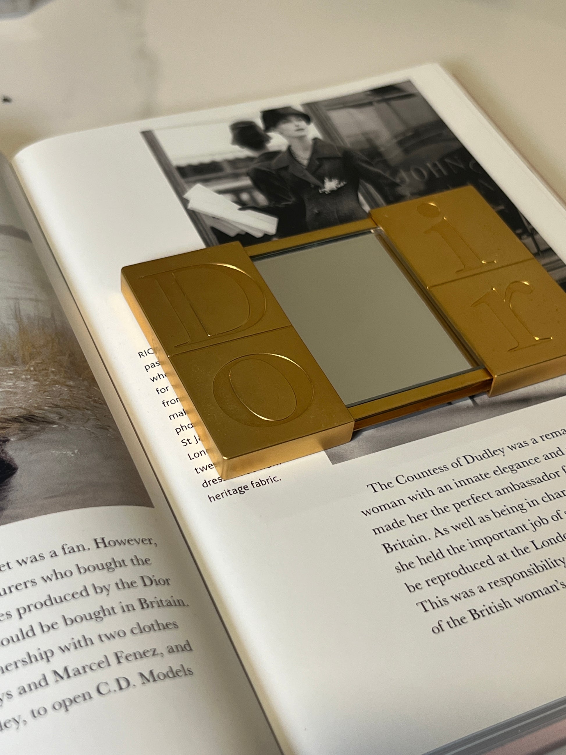 Dior稀有金色中古口袋鏡子 原裝防塵袋 左右開關 日本中古vintage