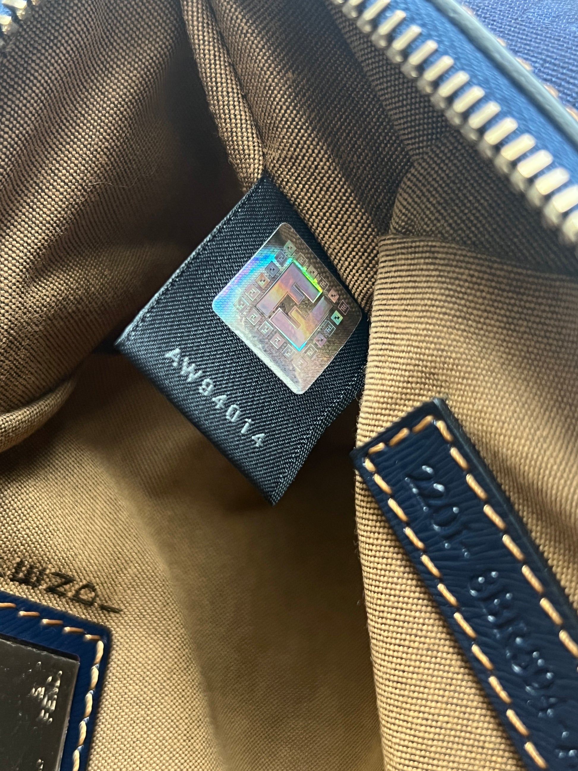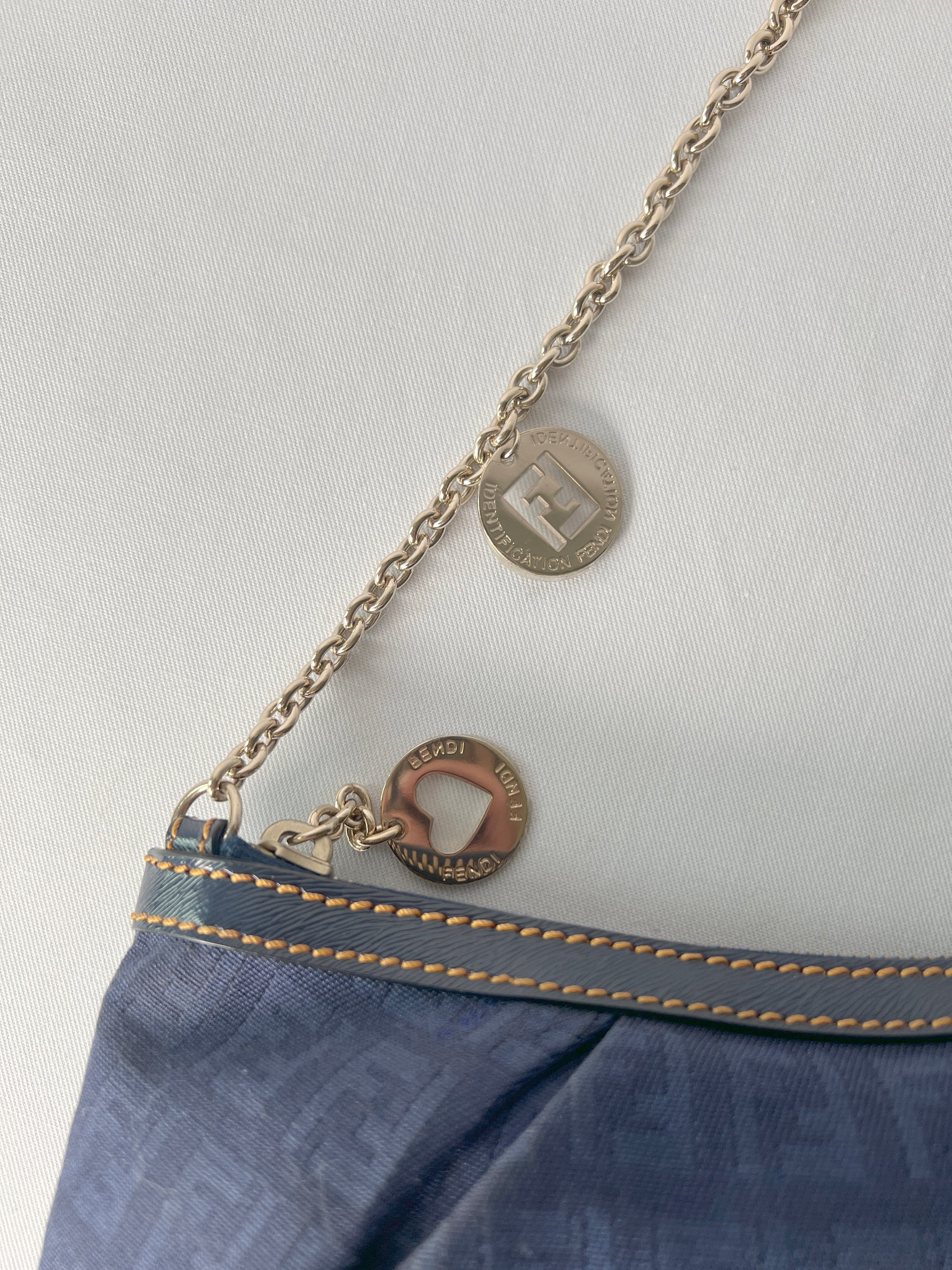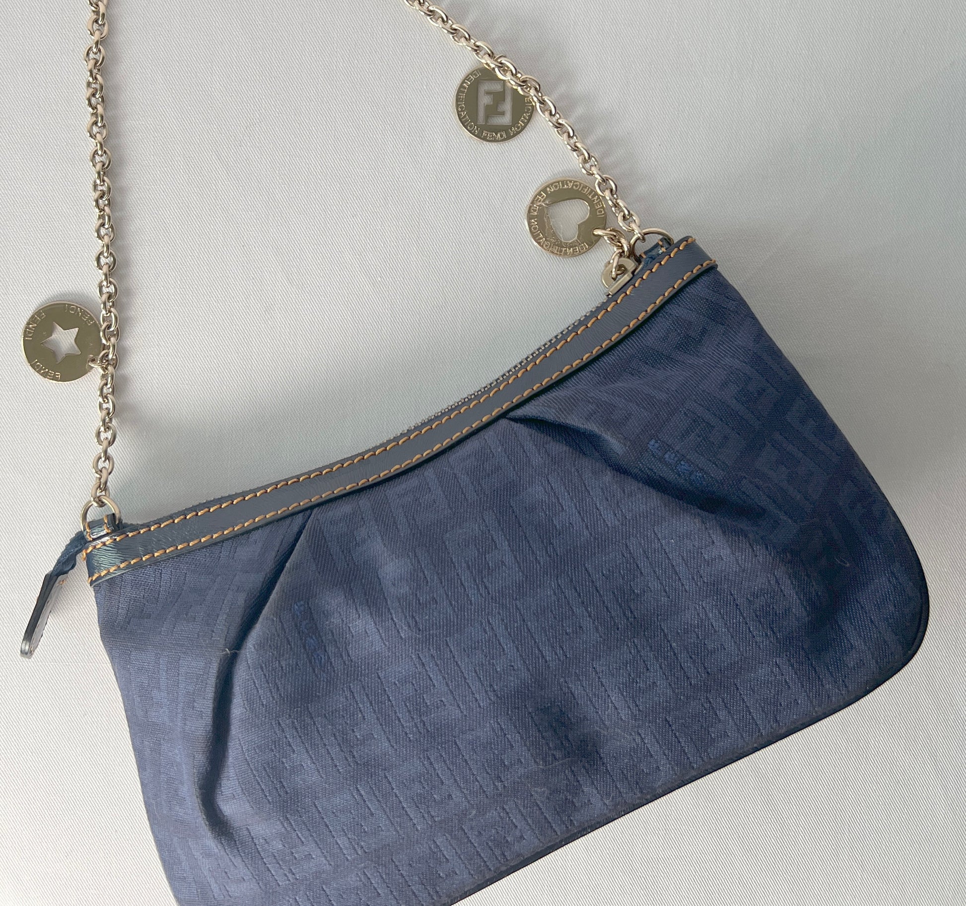Fendi Zucca極美品深藍色老花心形星形吊飾手提袋 保證卡