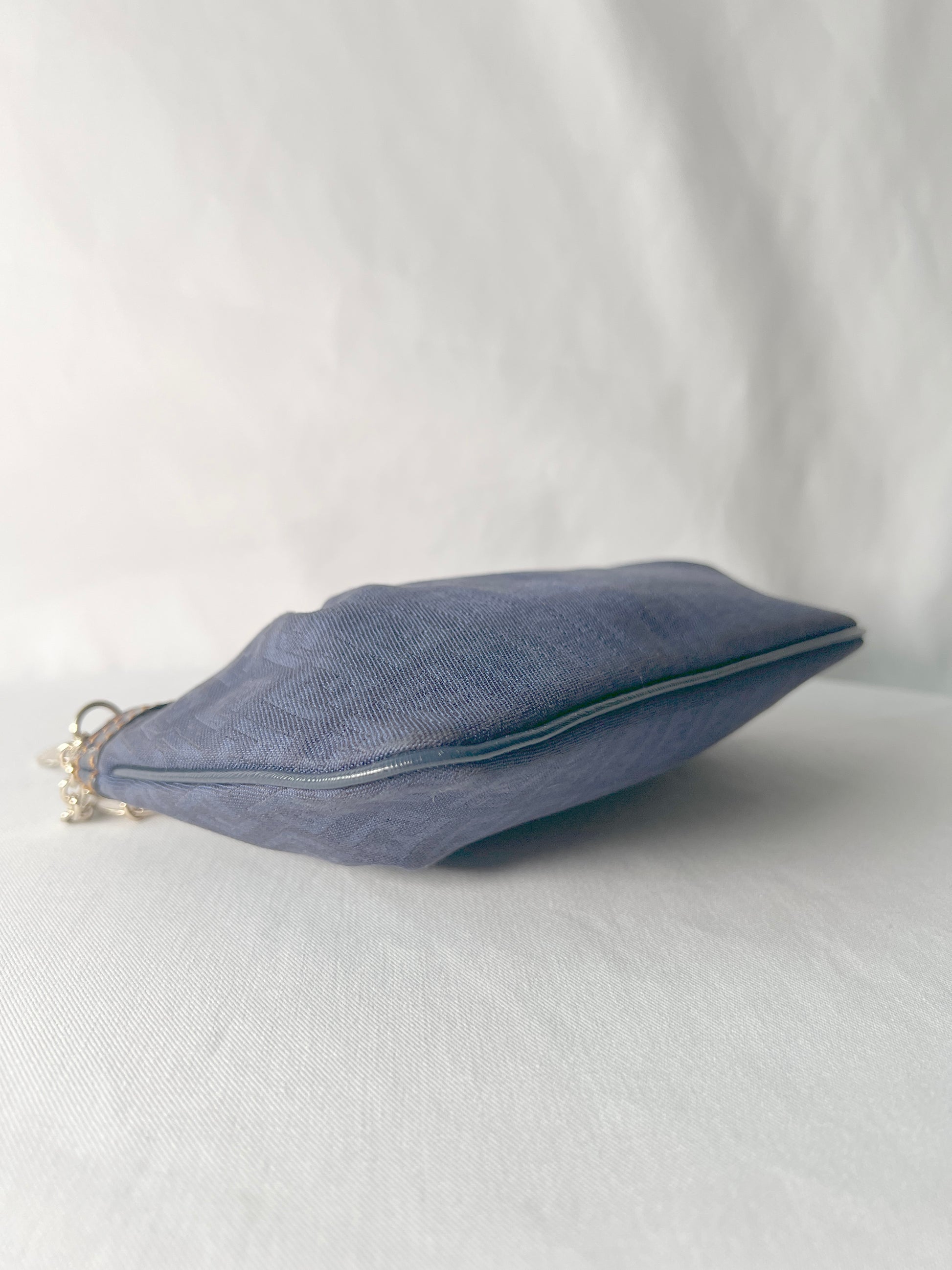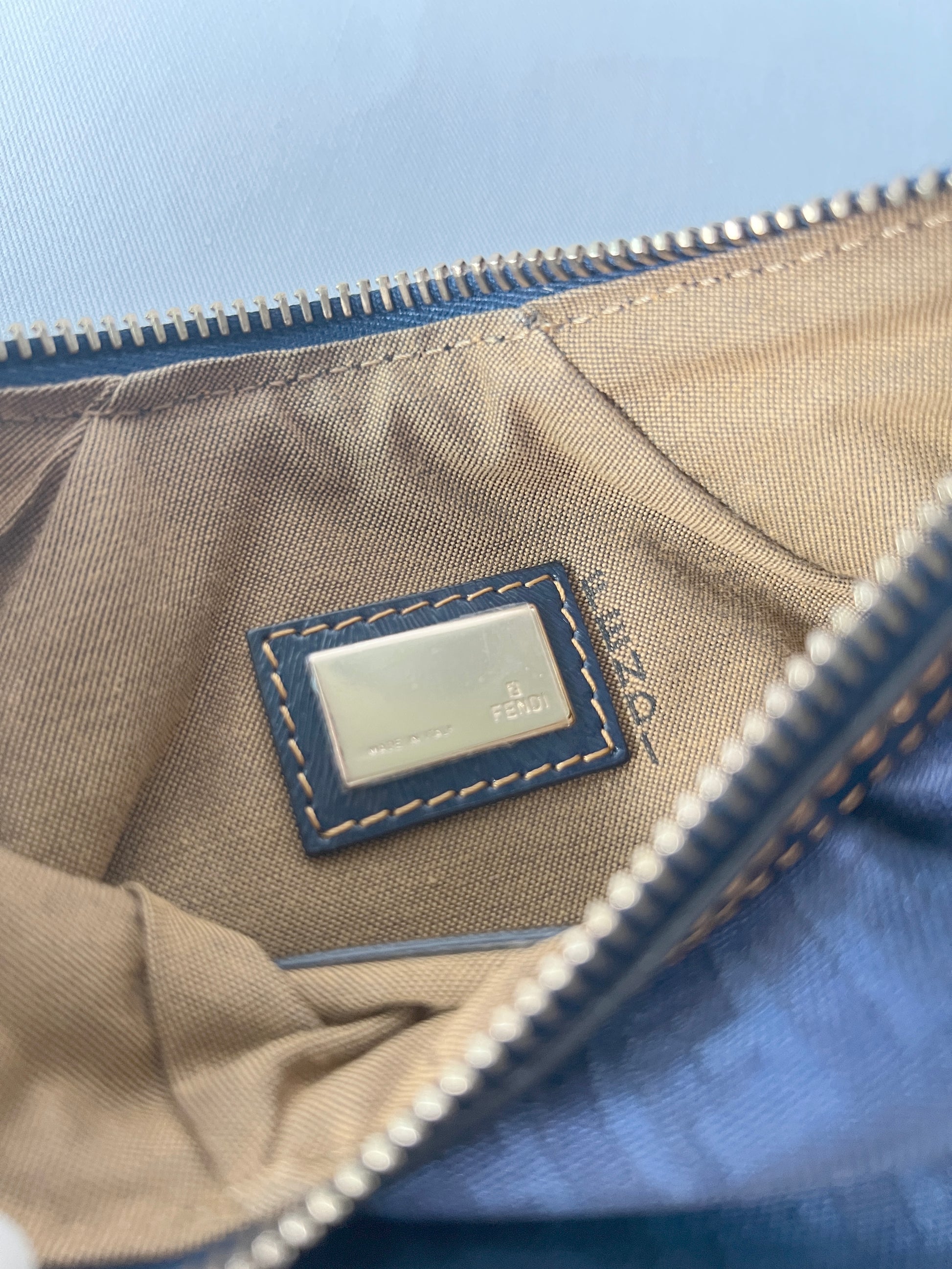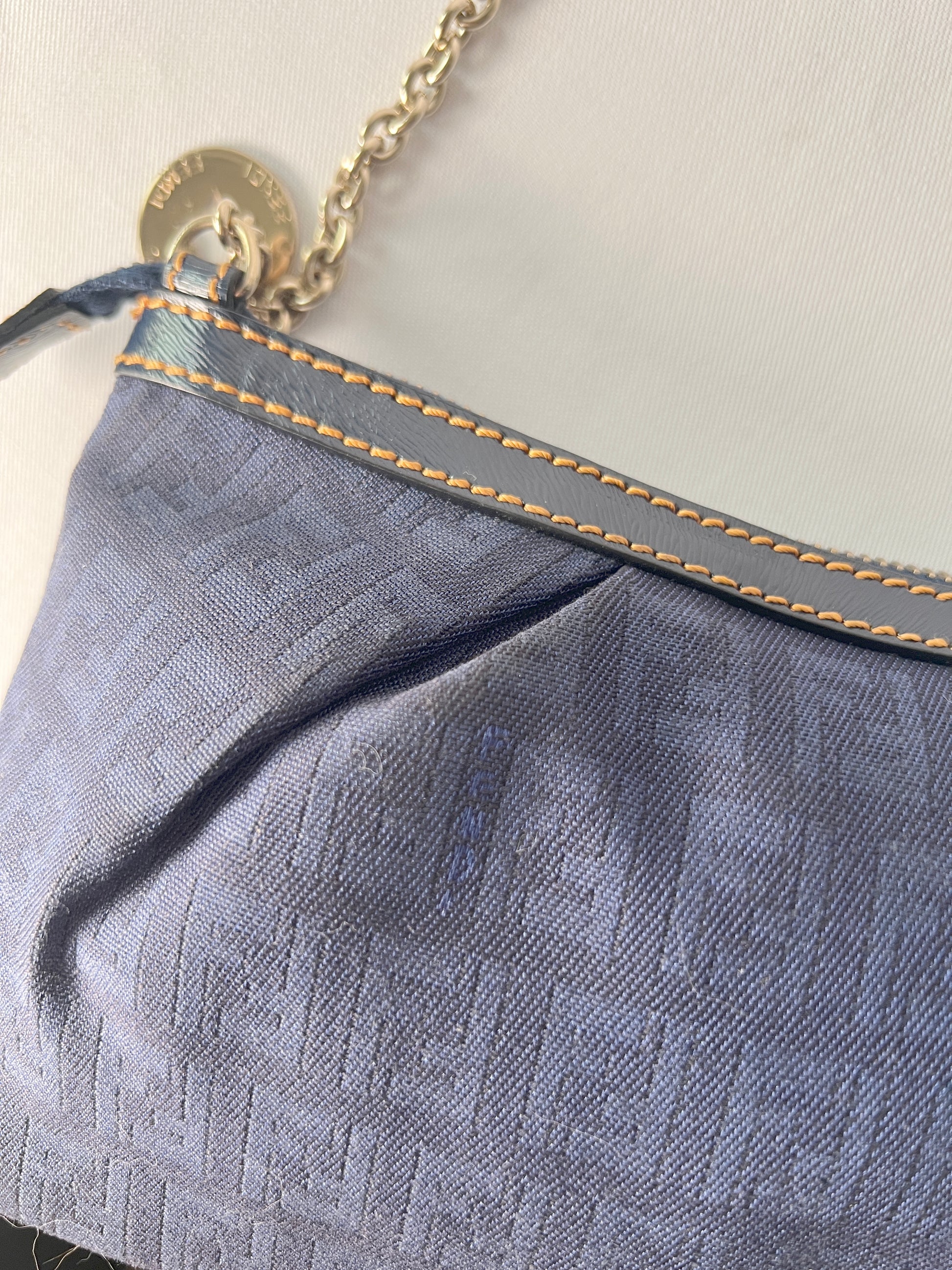 Fendi Zucca極美品深藍色老花心形星形吊飾手提袋 保證卡
