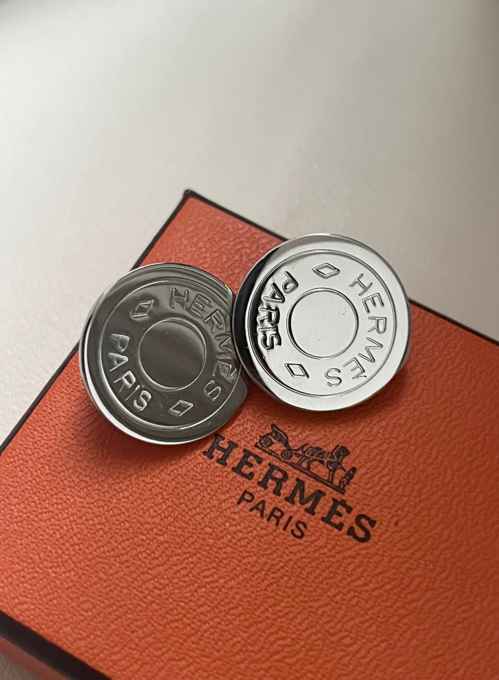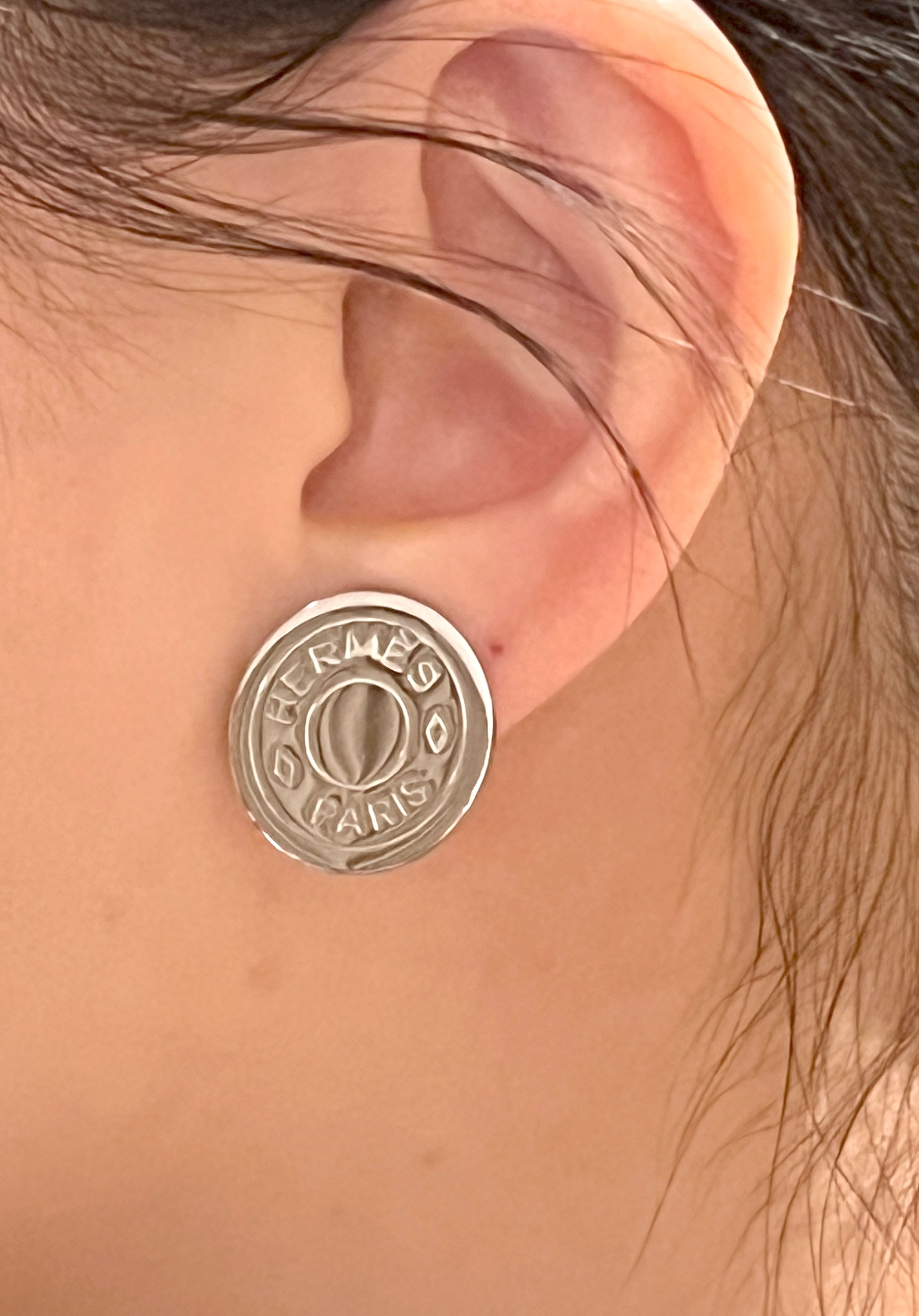 Hermes中古夾式銀字耳環 日本中古二手vintage