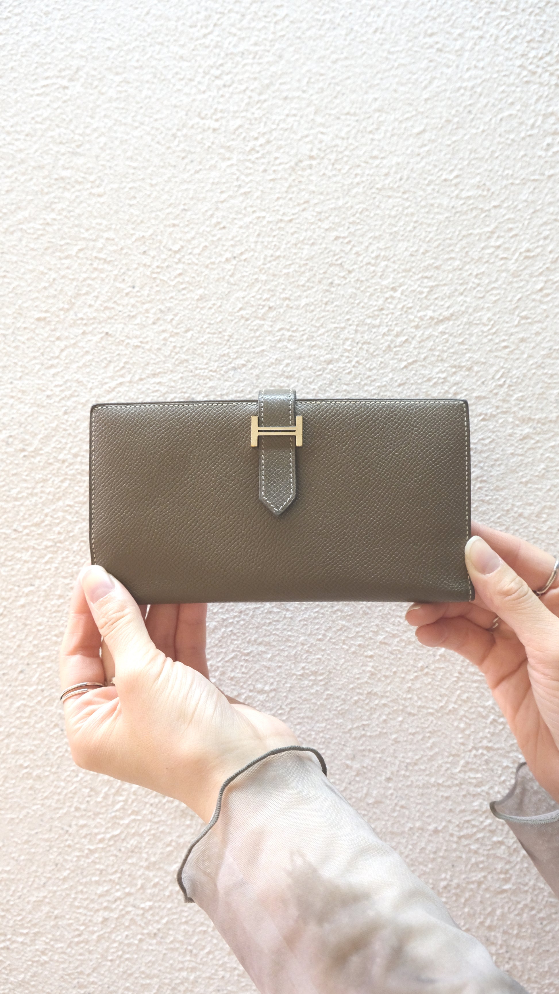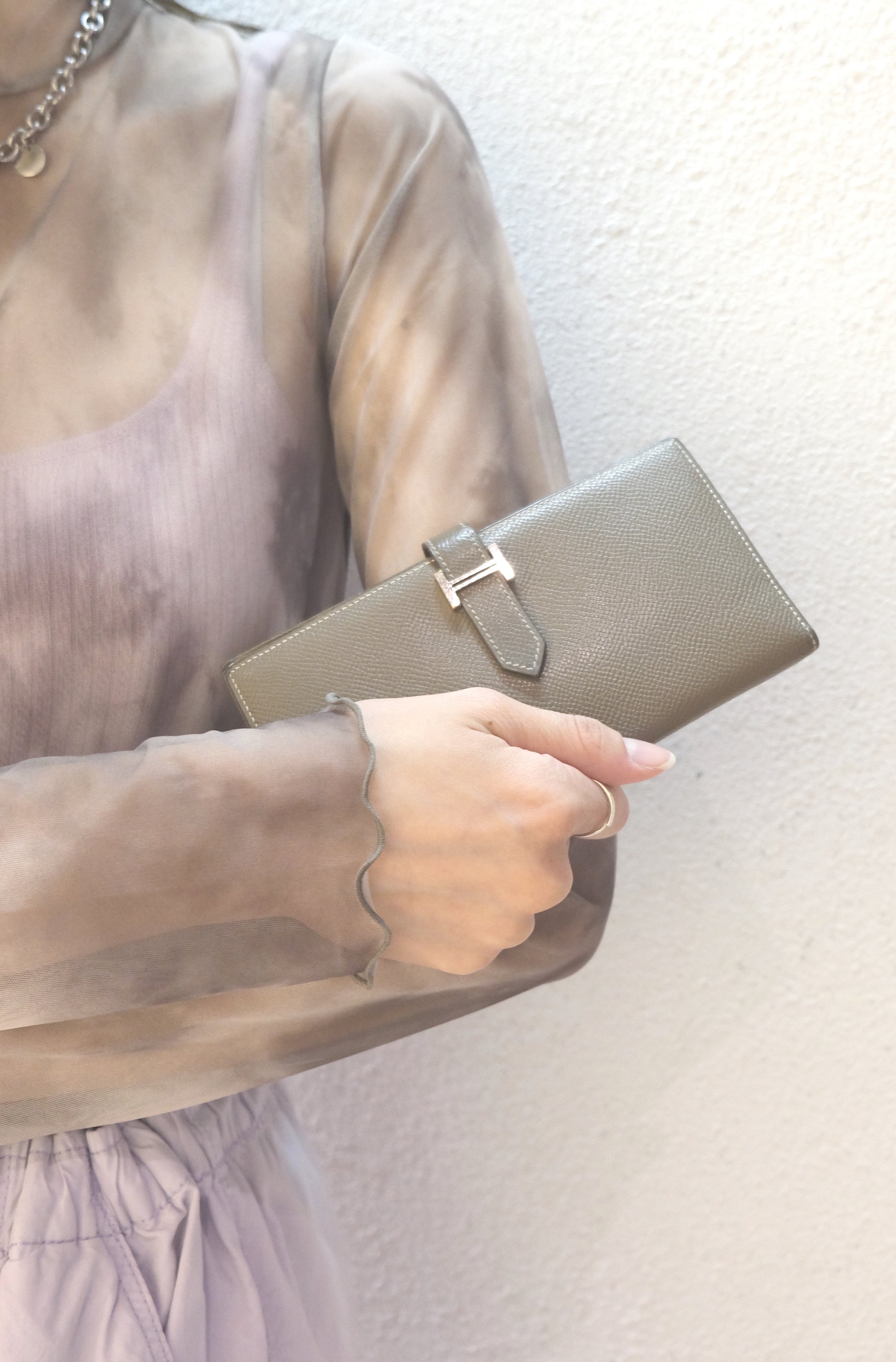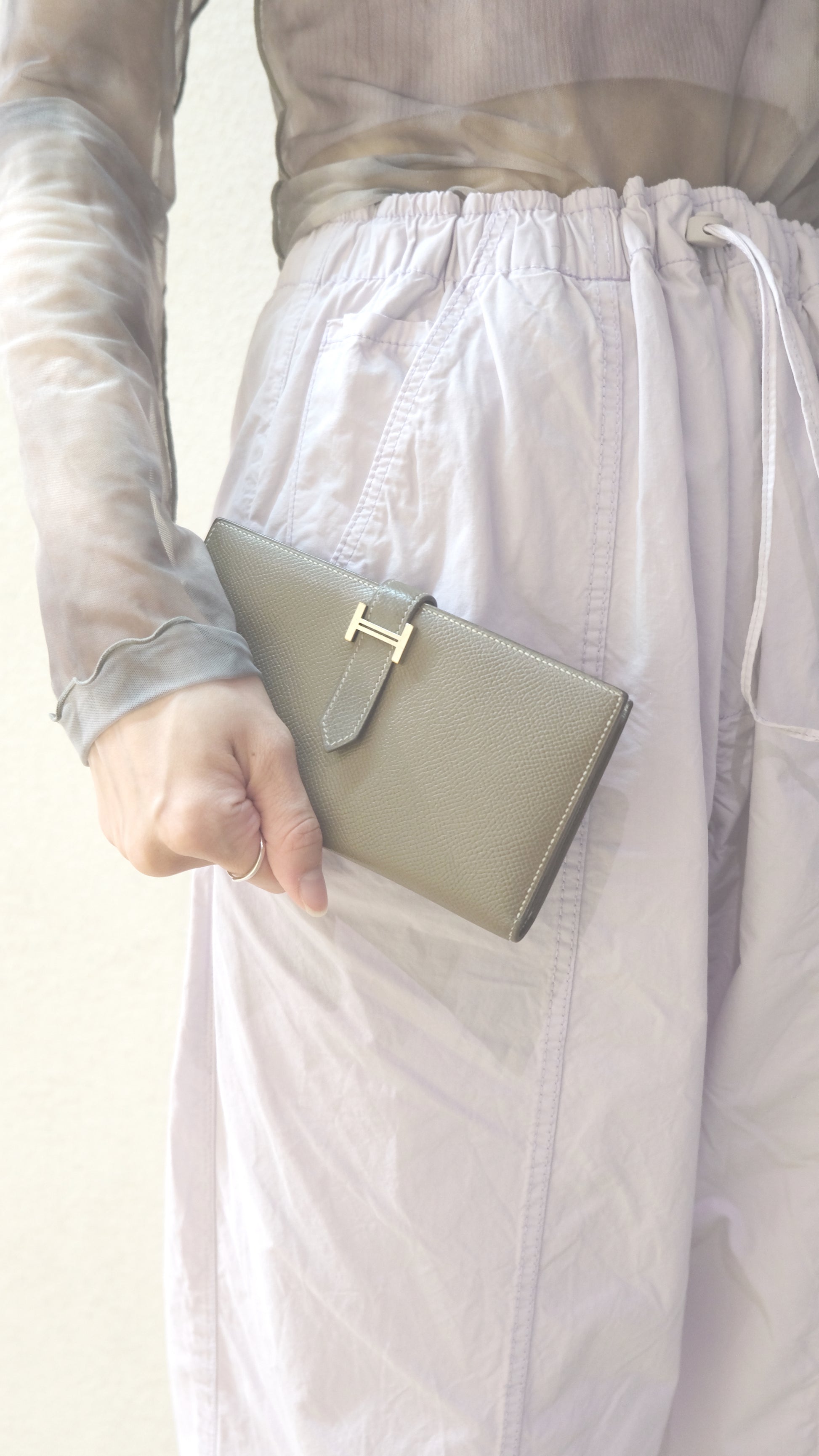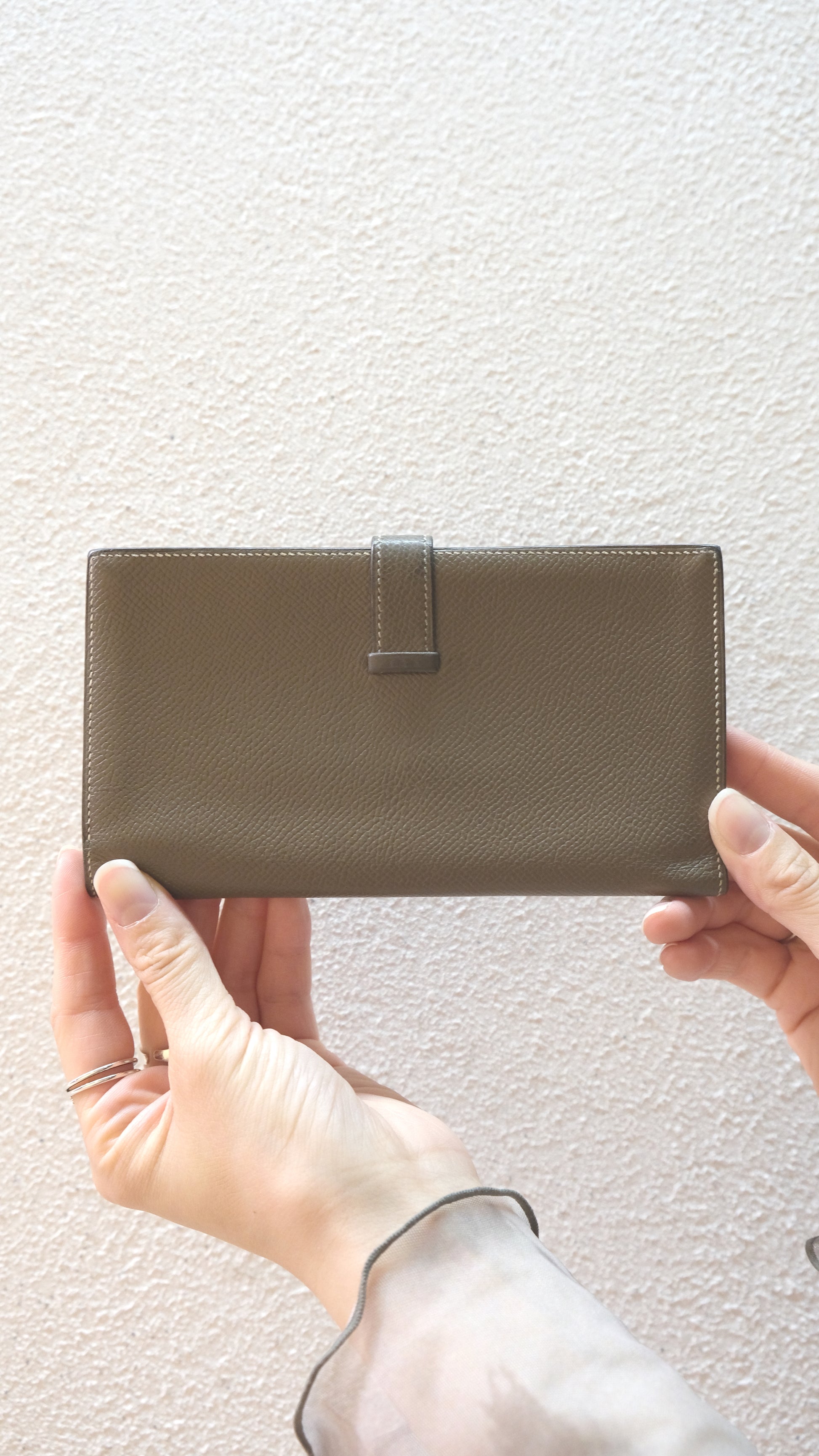 RARE TO GO 中古 | Hermes大象灰銀扣Bearn皮革手拿銀包錢包長夾