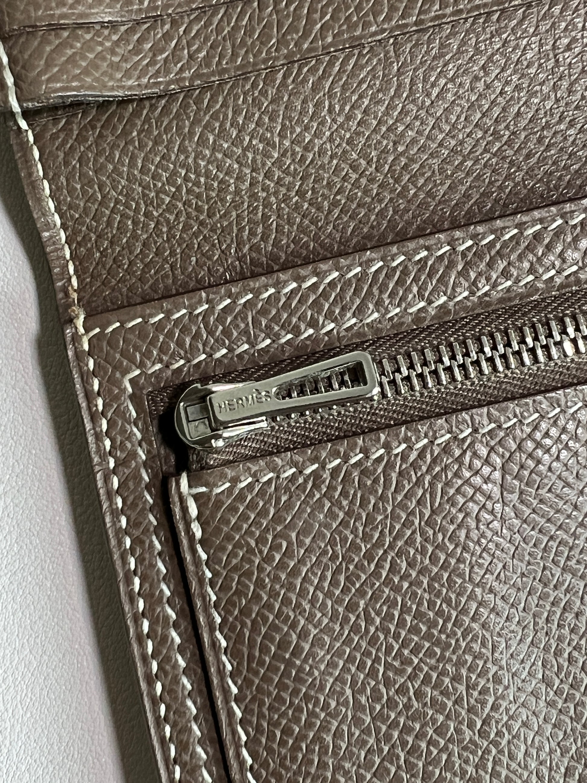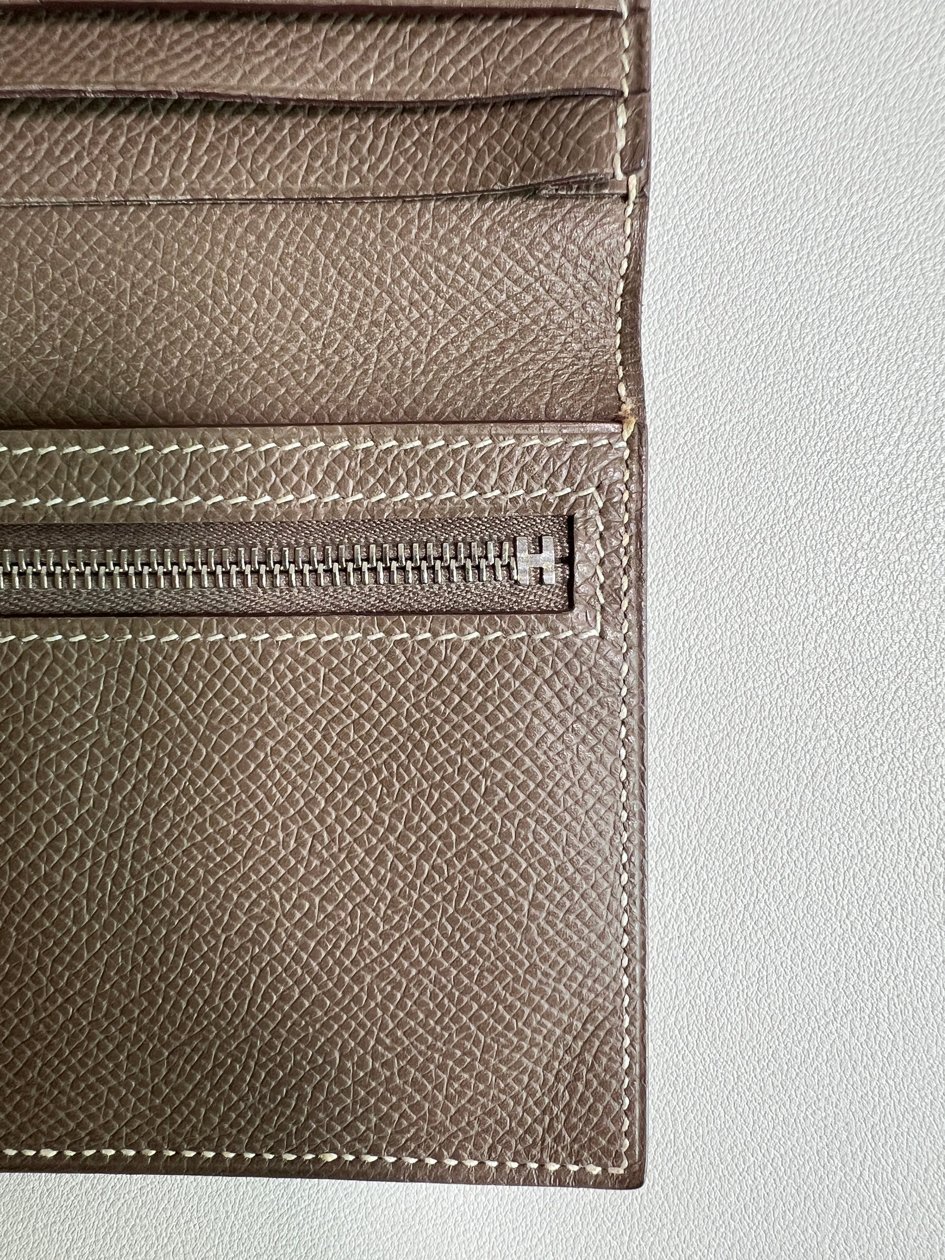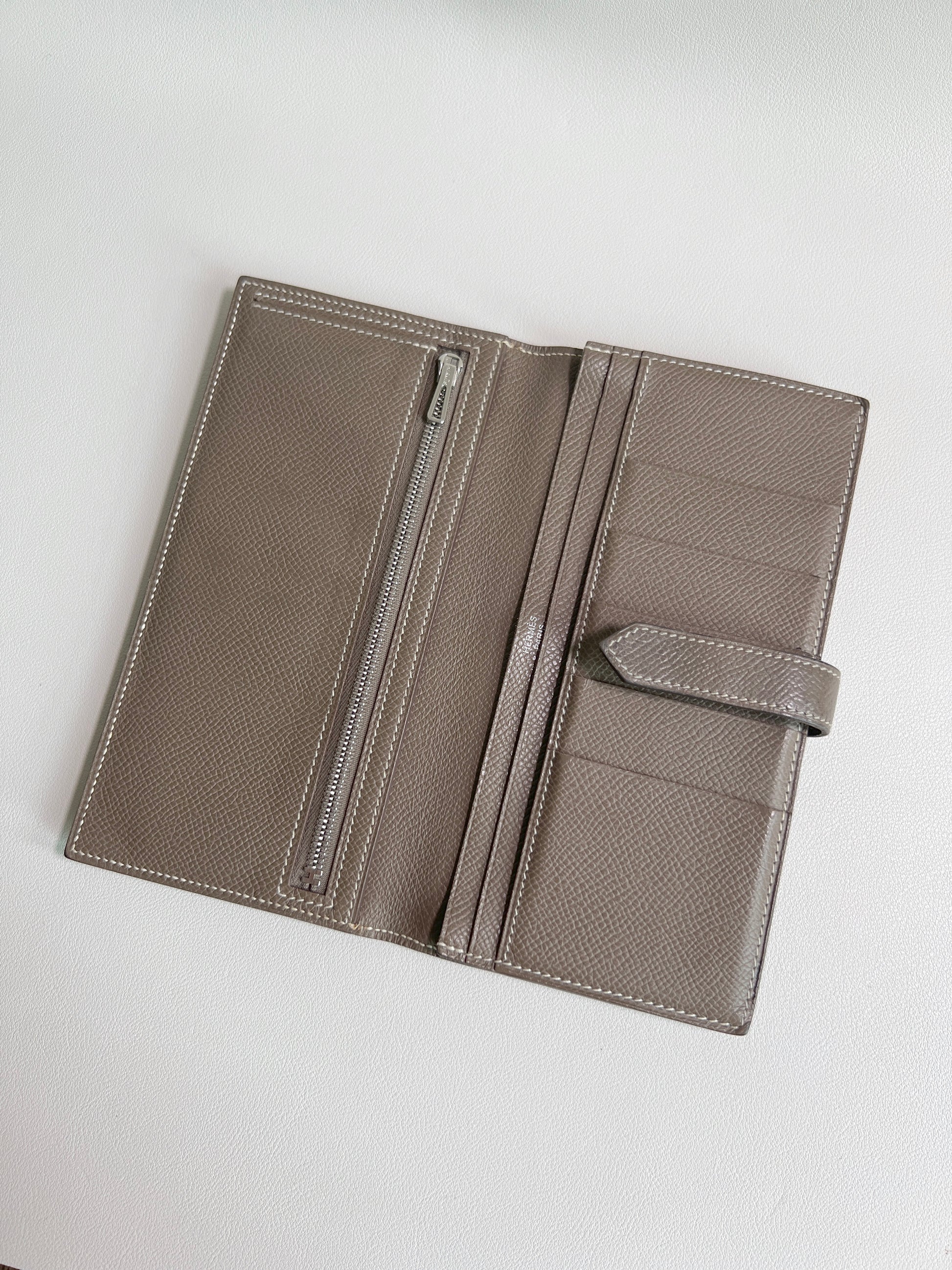 Hermes大象灰銀扣Bearn皮革手拿銀包錢包長夾