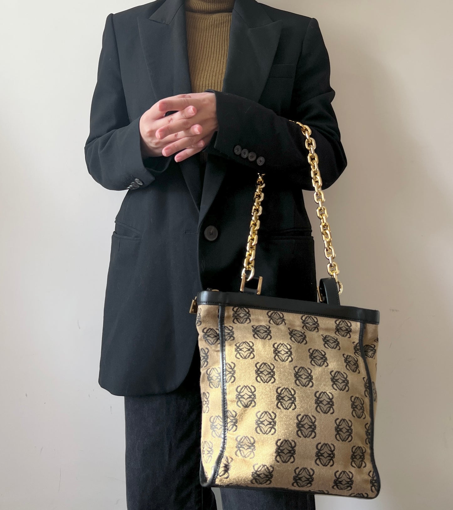 LOEWE稀有小琴譜手提側肩包 贈金屬鏈條肩帶 中古Vintage