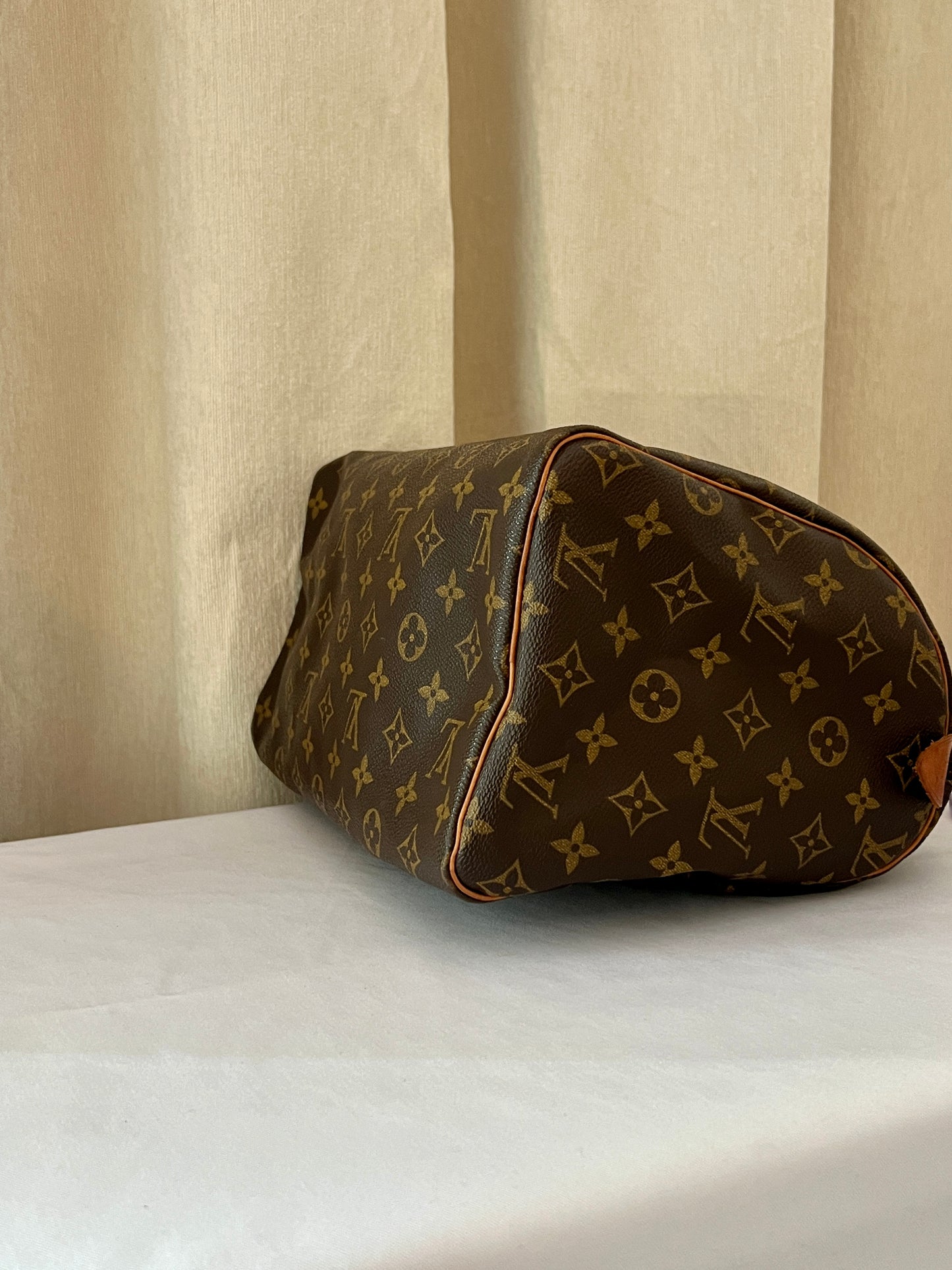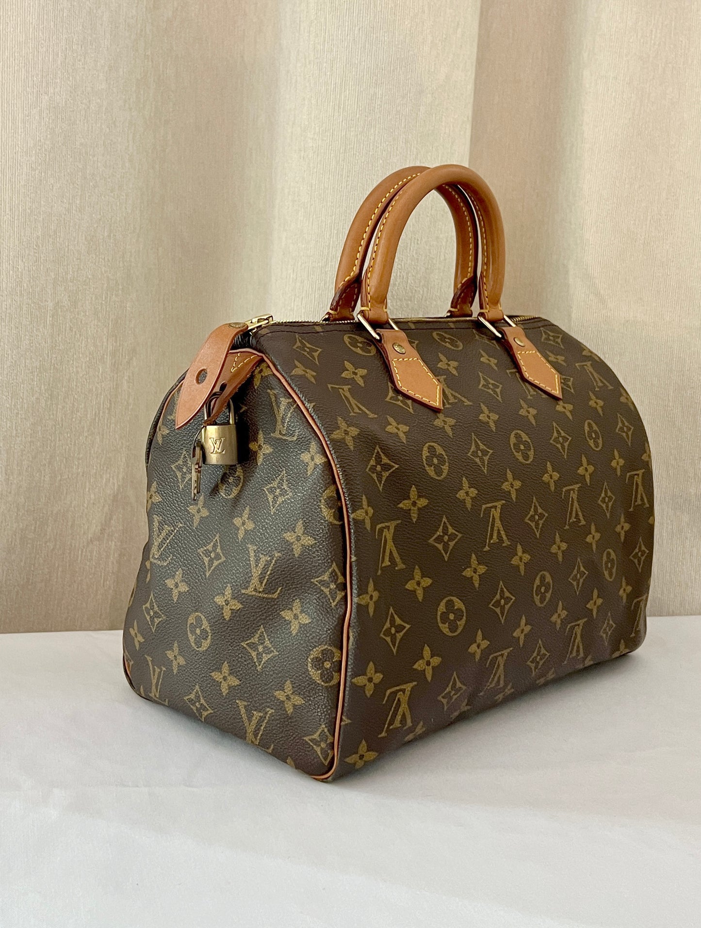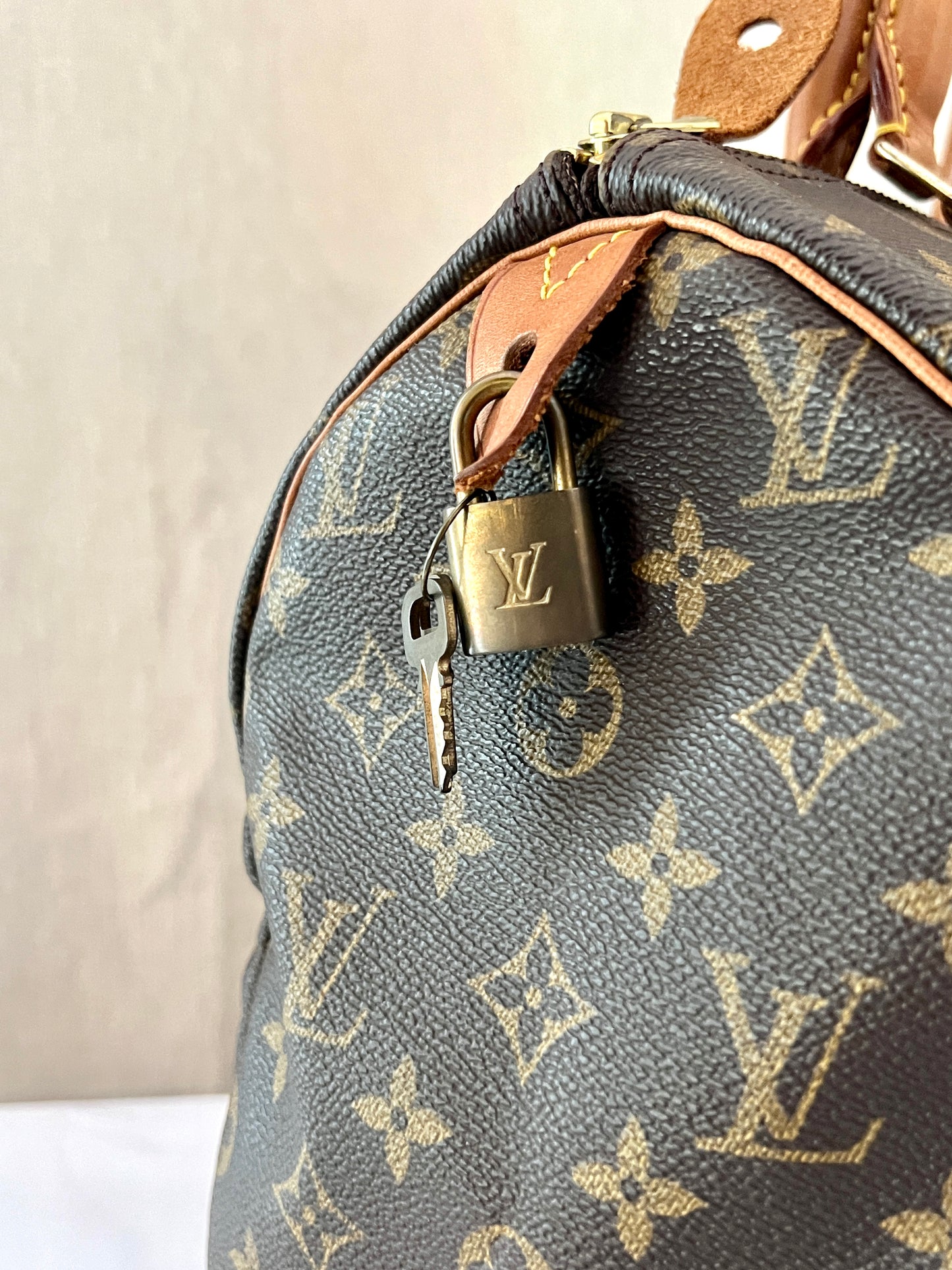 LV speedy 30 啡色老花金色鎖頭手袋大容量手提包 日出中古二手