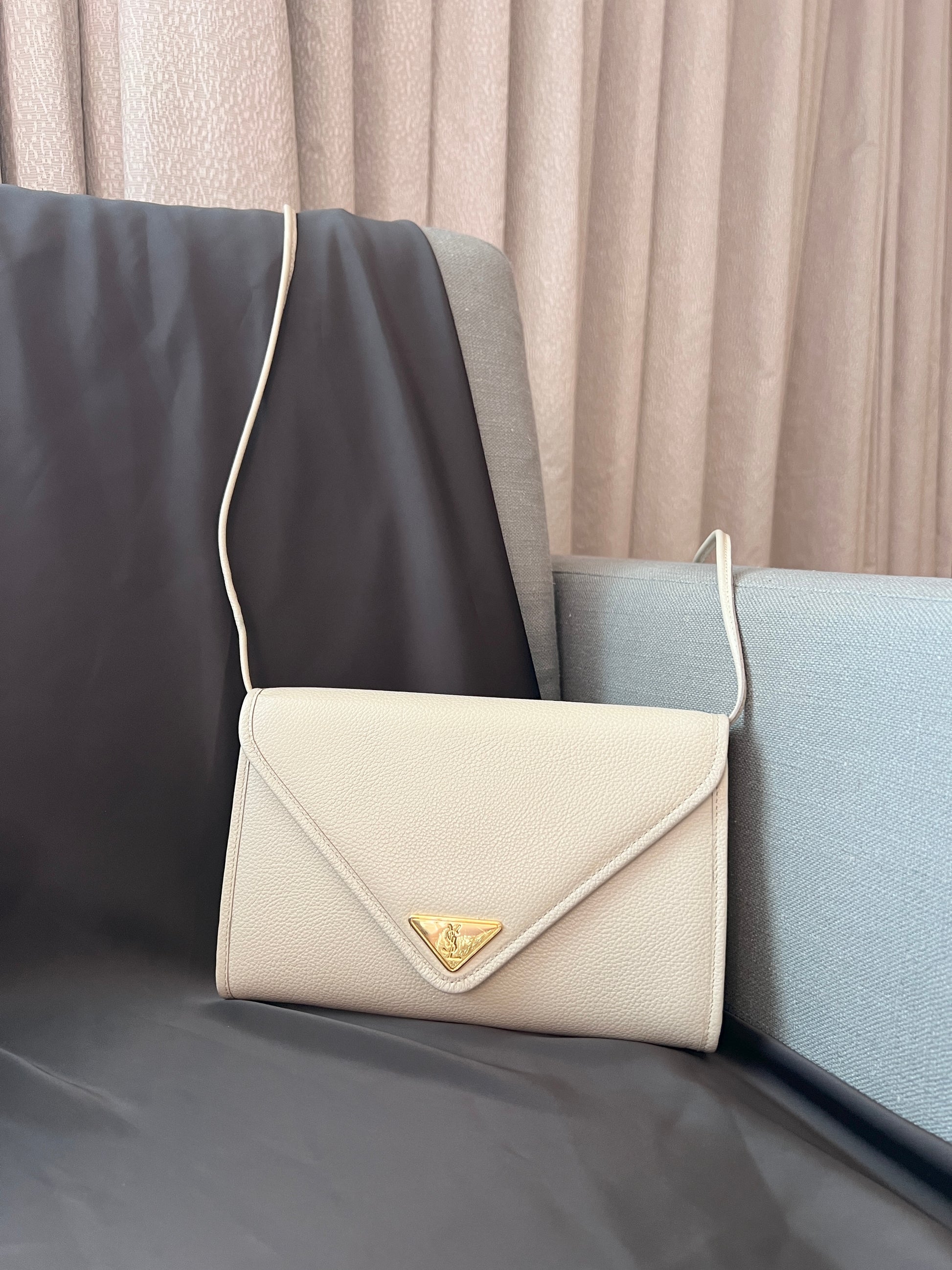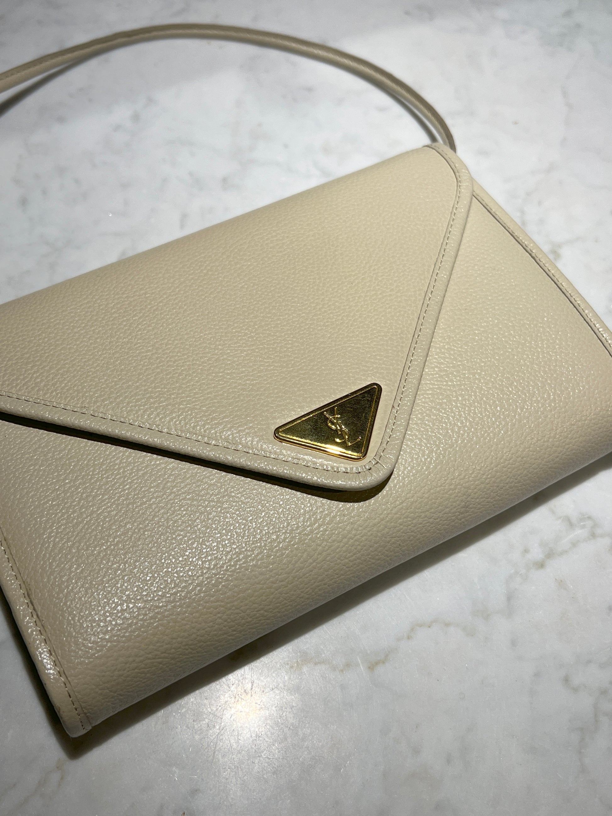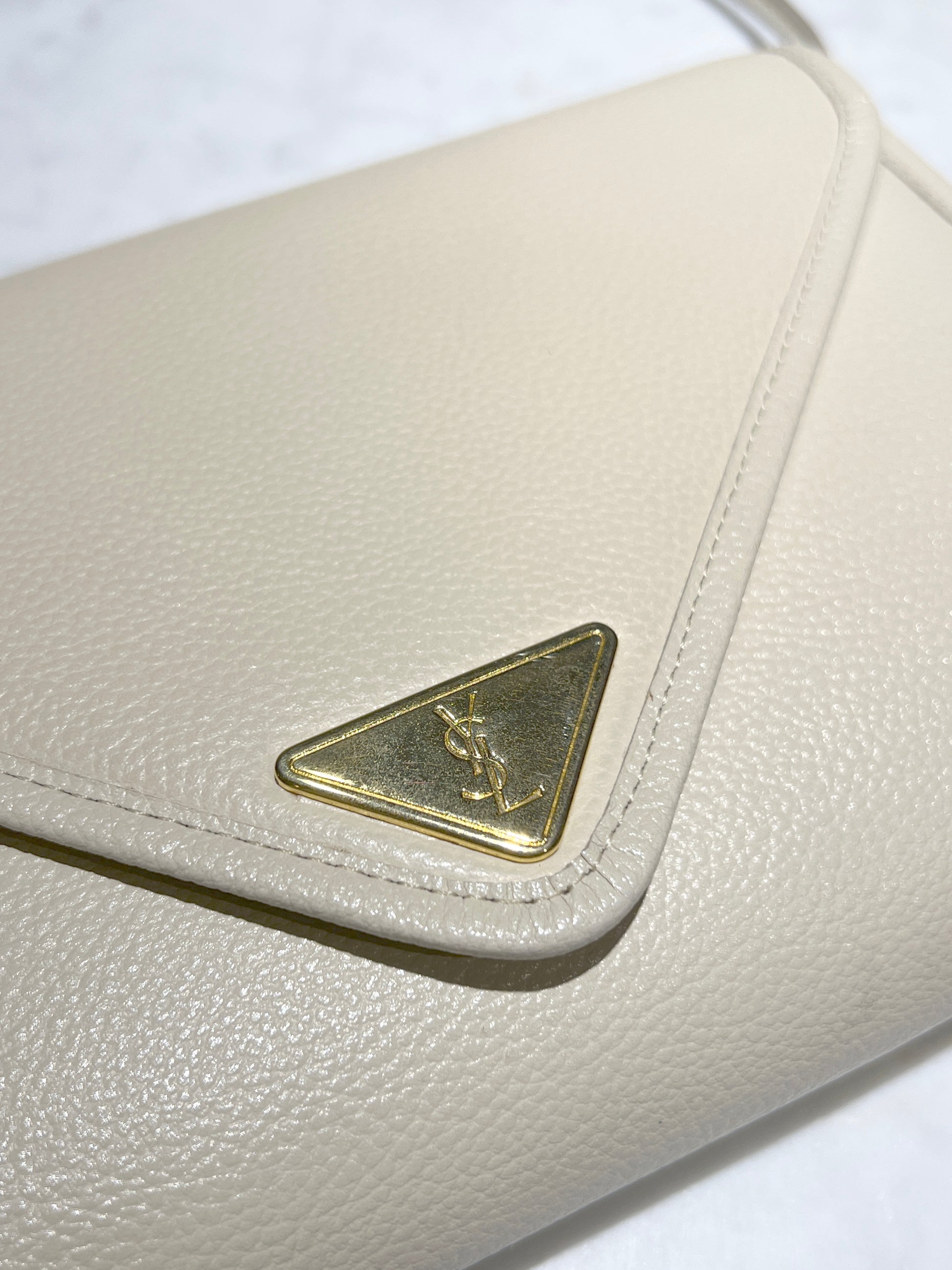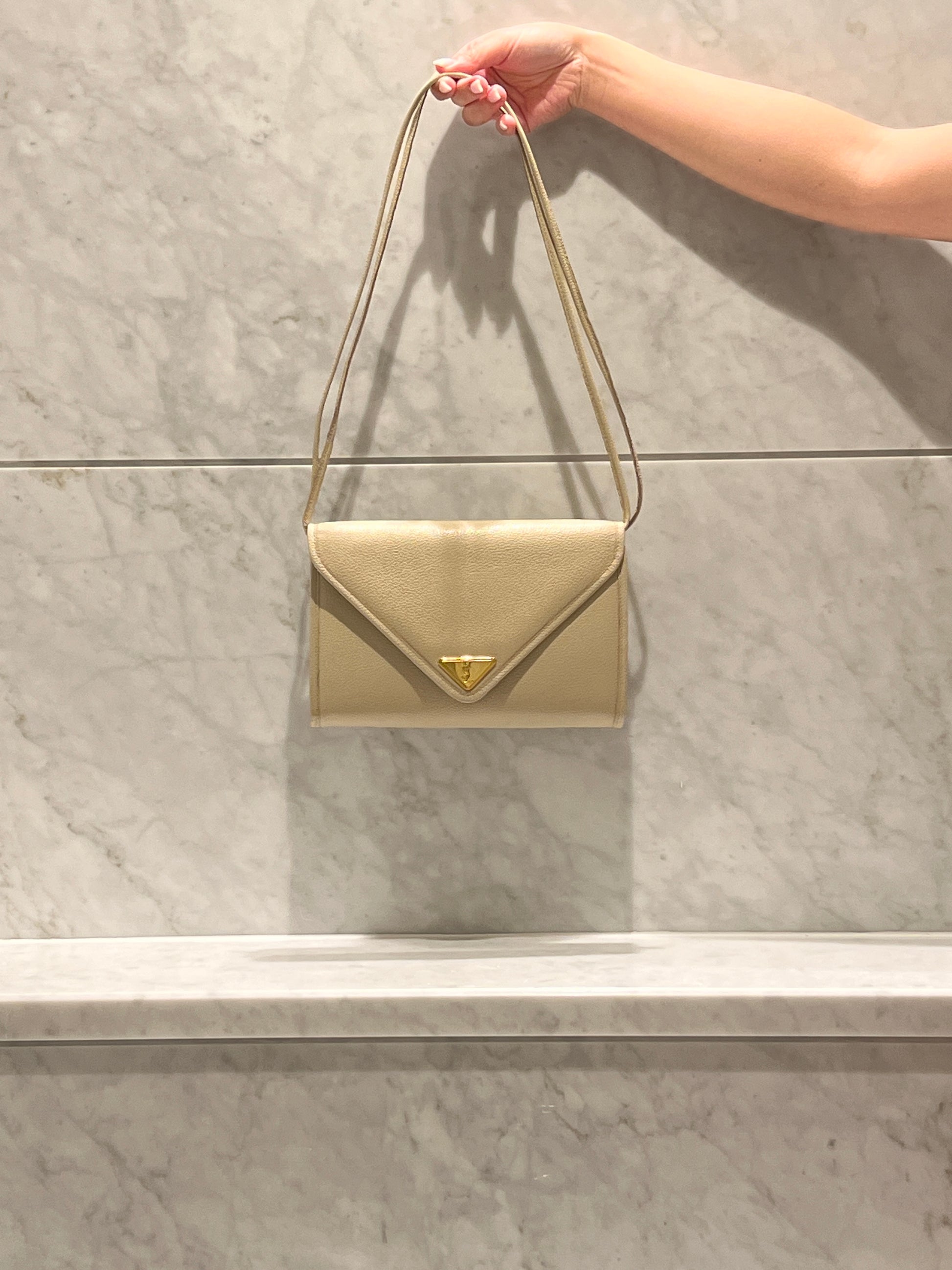 YSL米白色信封皮革斜揹側肩腋下手提袋
