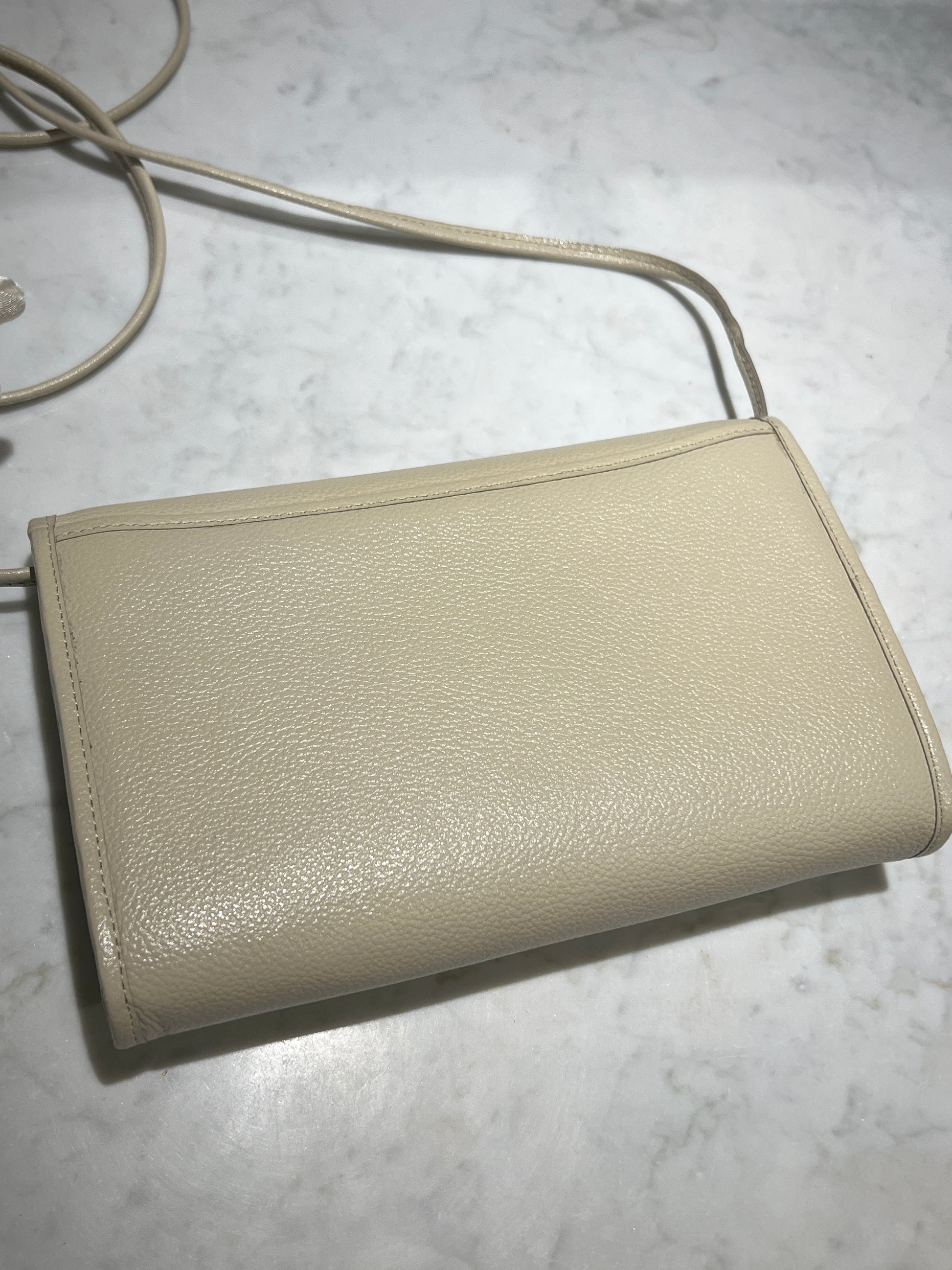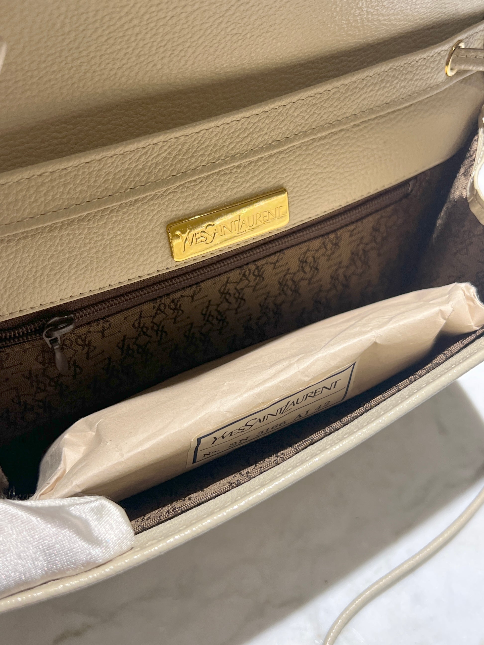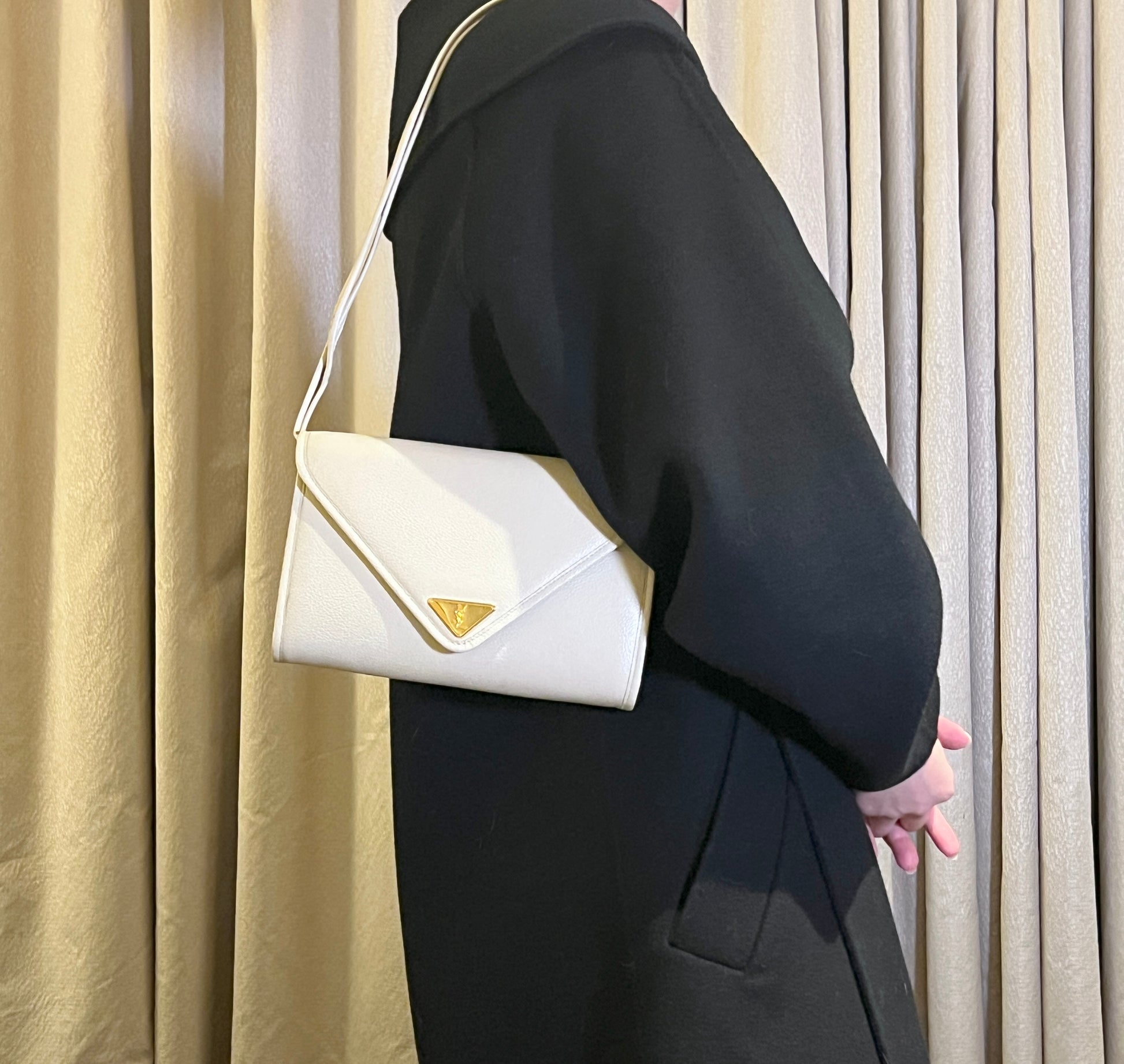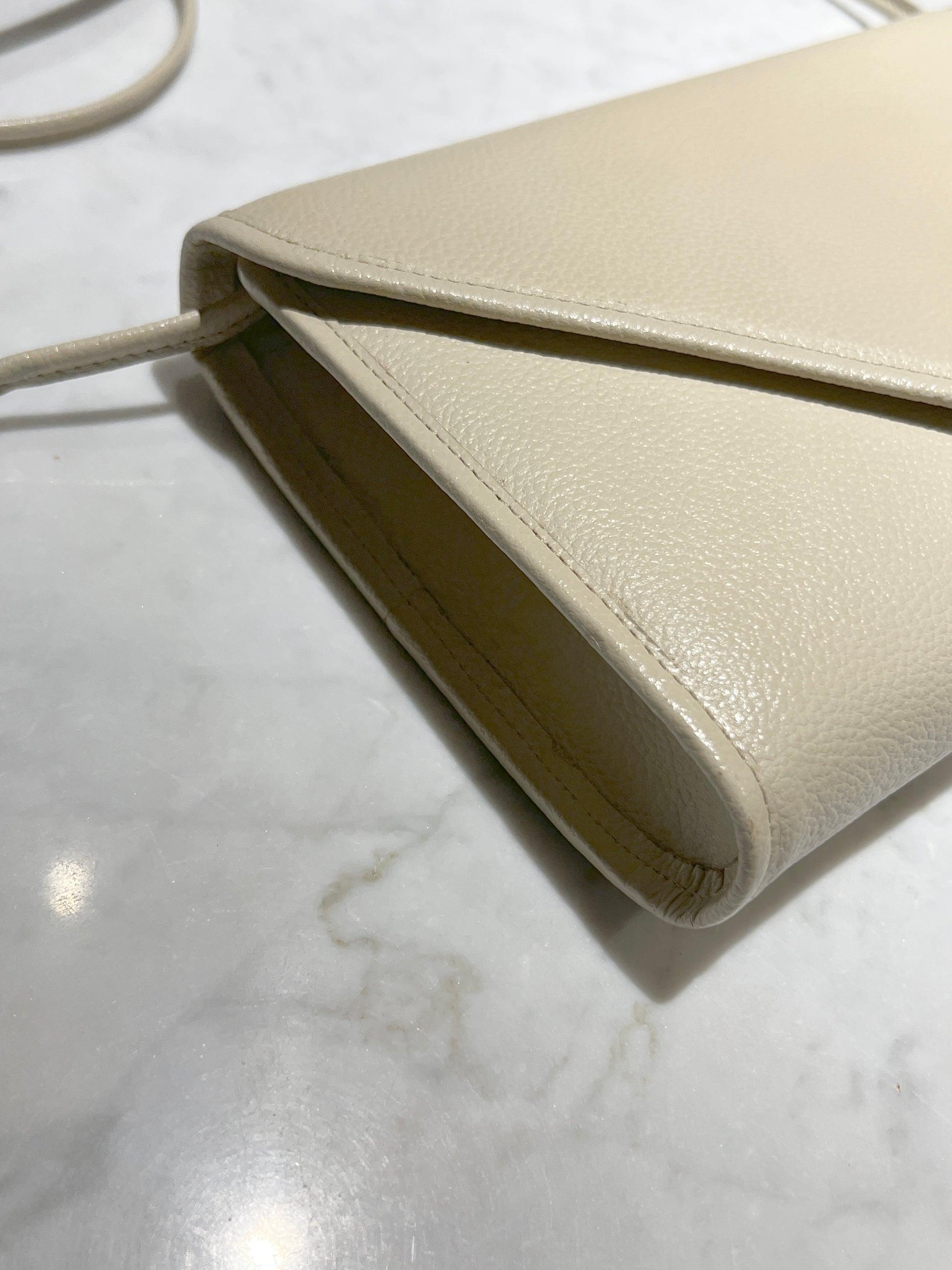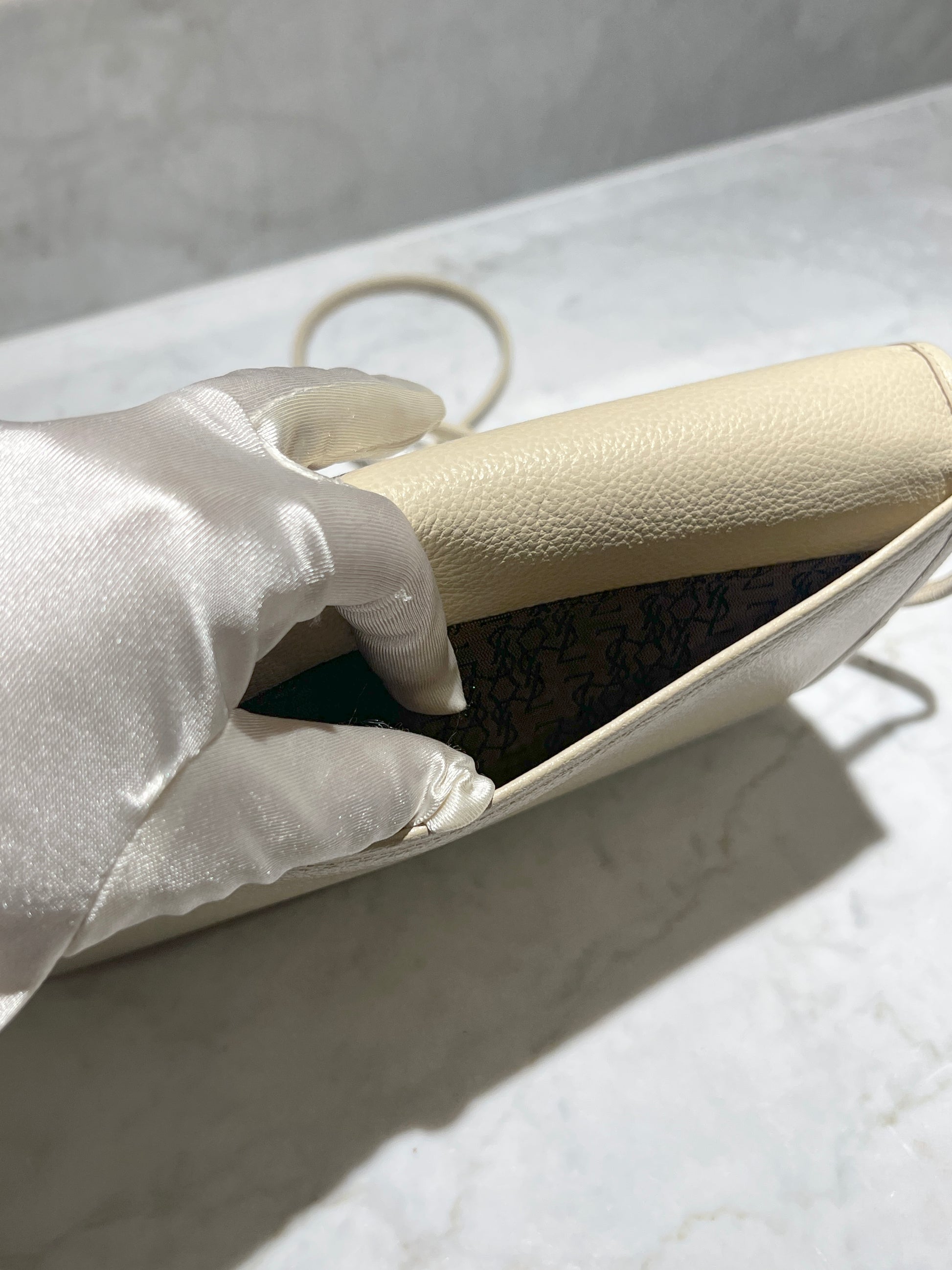 YSL米白色信封皮革斜揹側肩腋下手提袋
