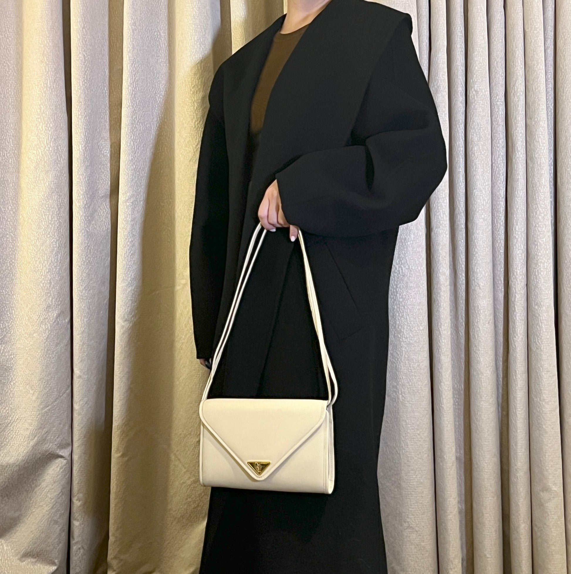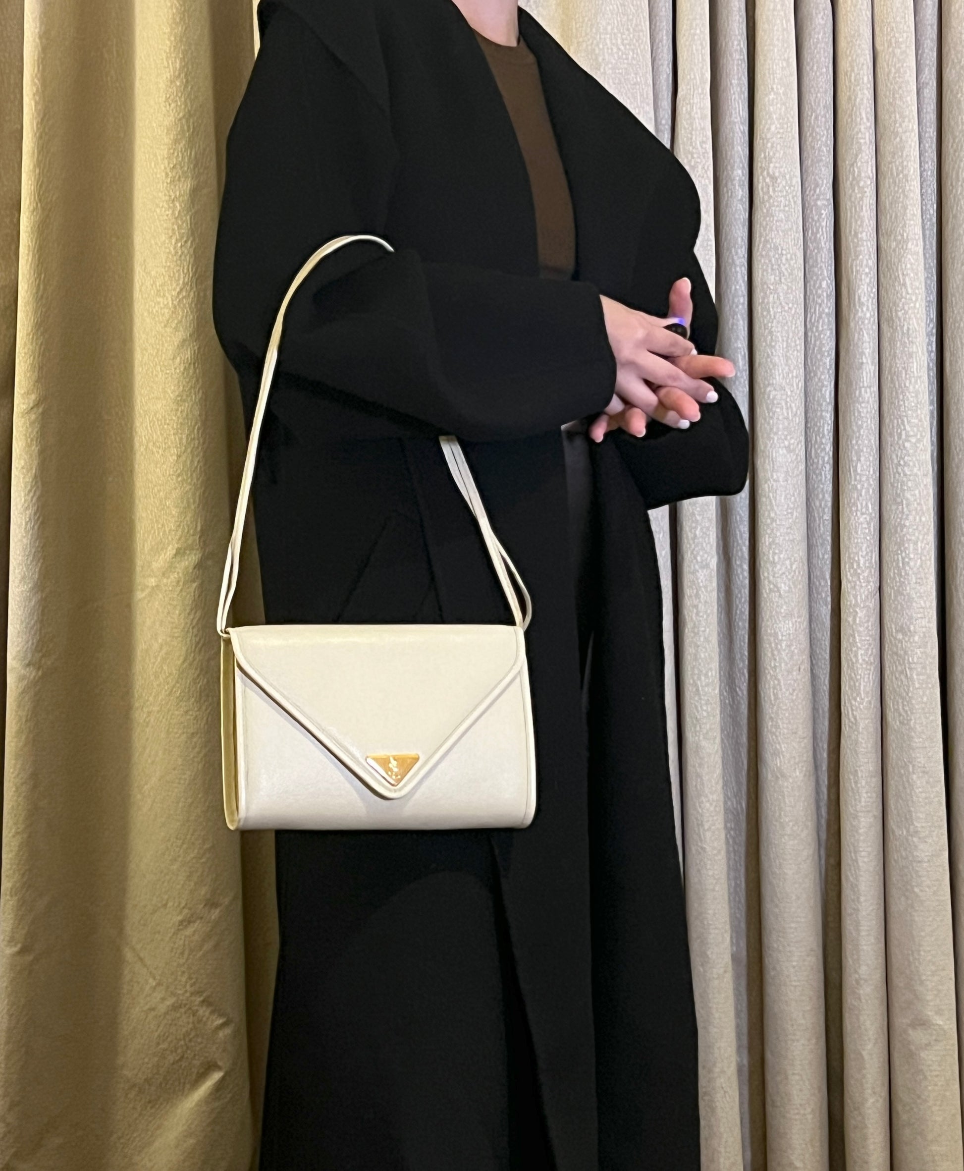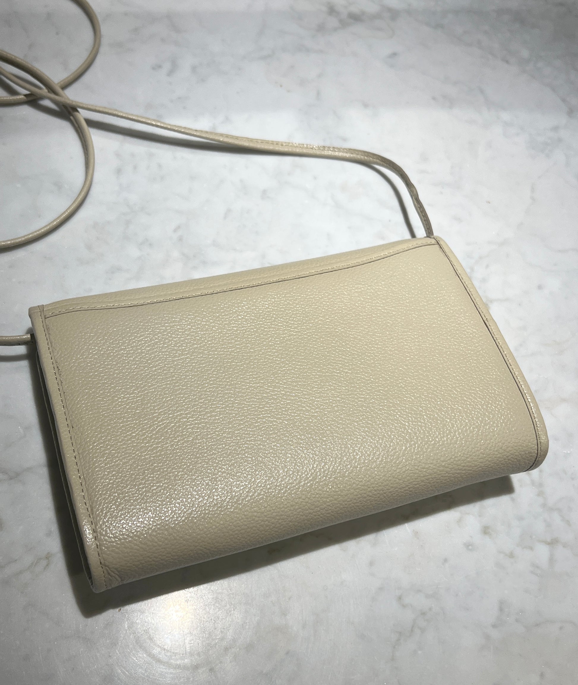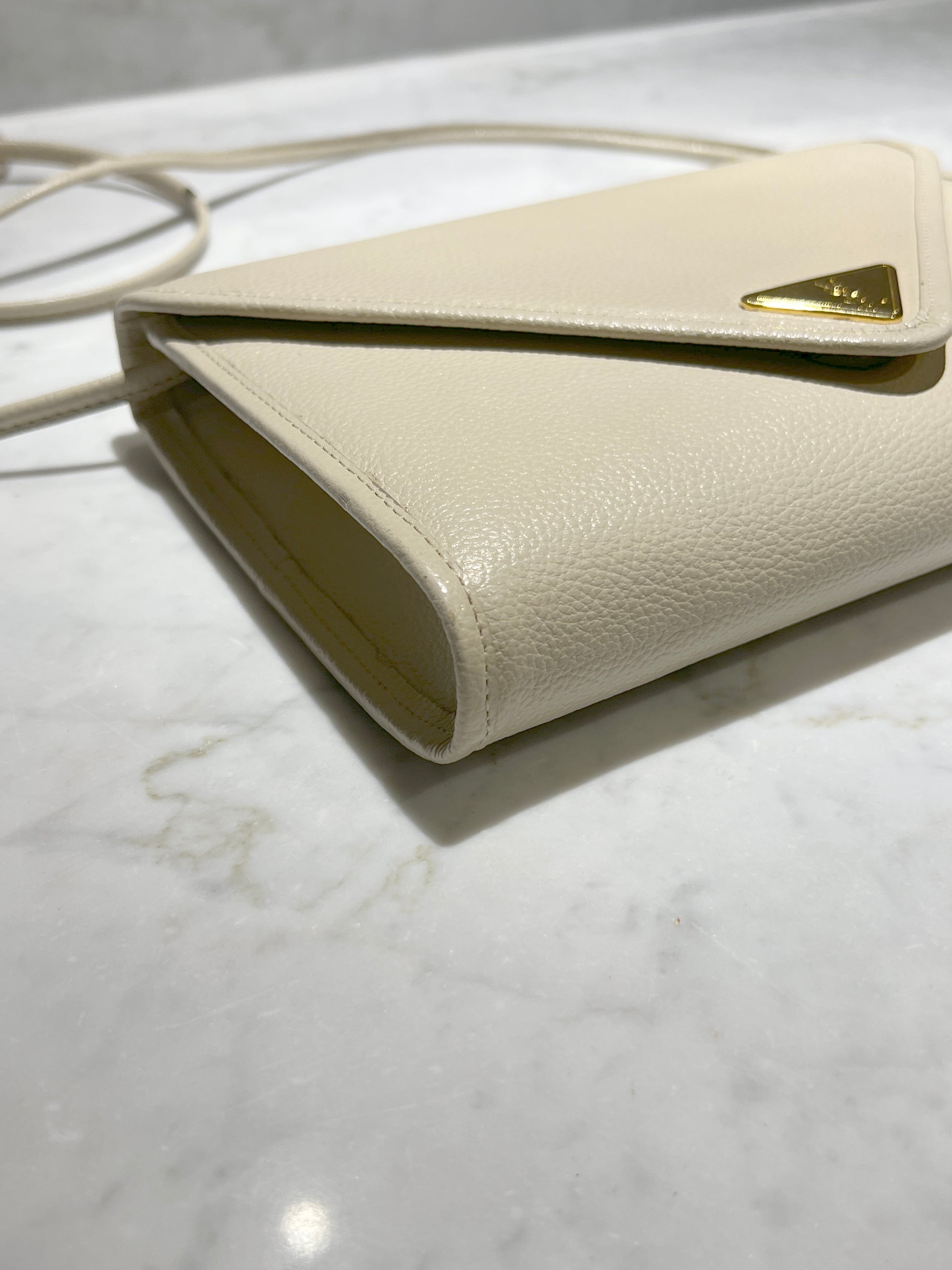 YSL米白色信封皮革斜揹側肩腋下手提袋